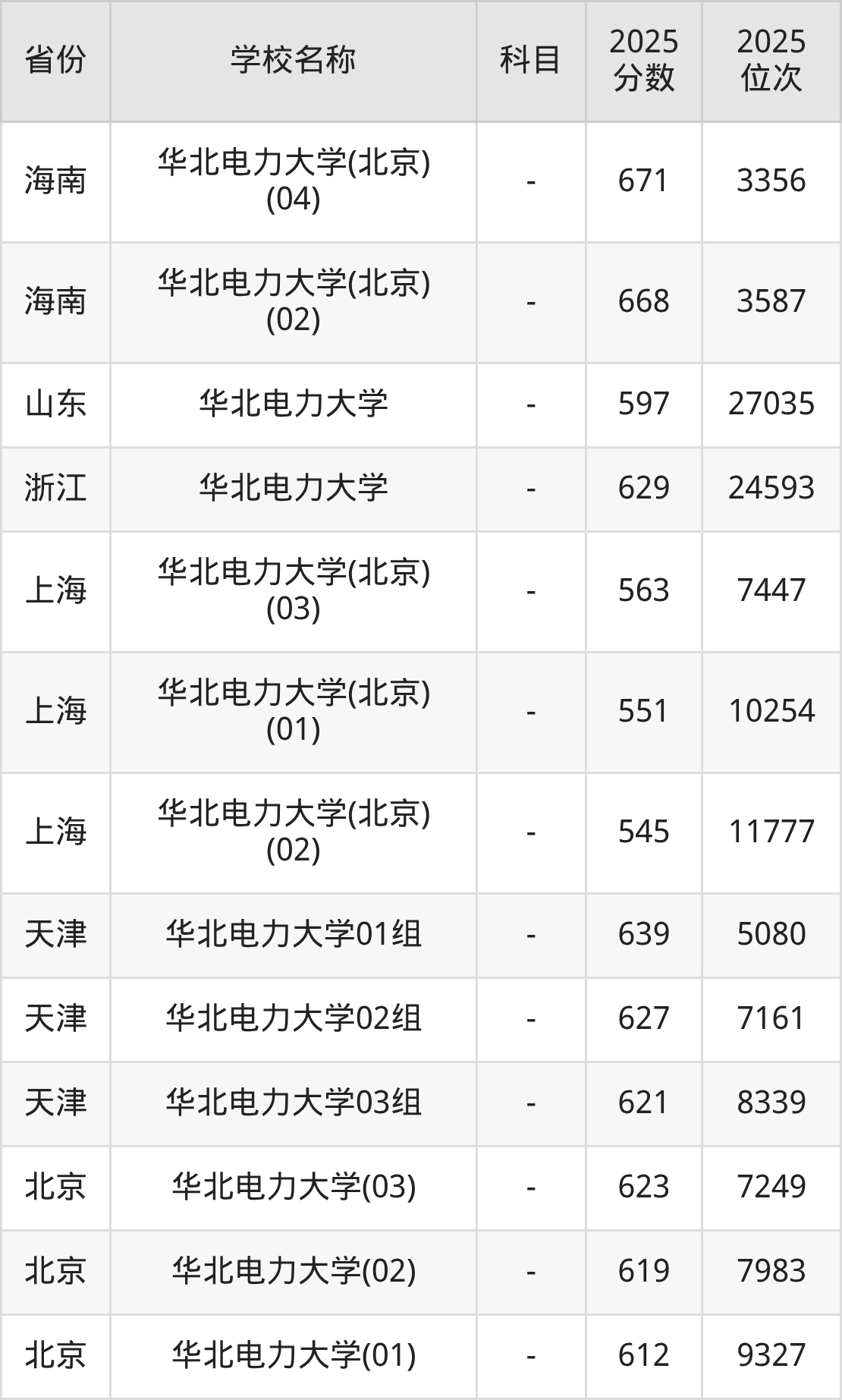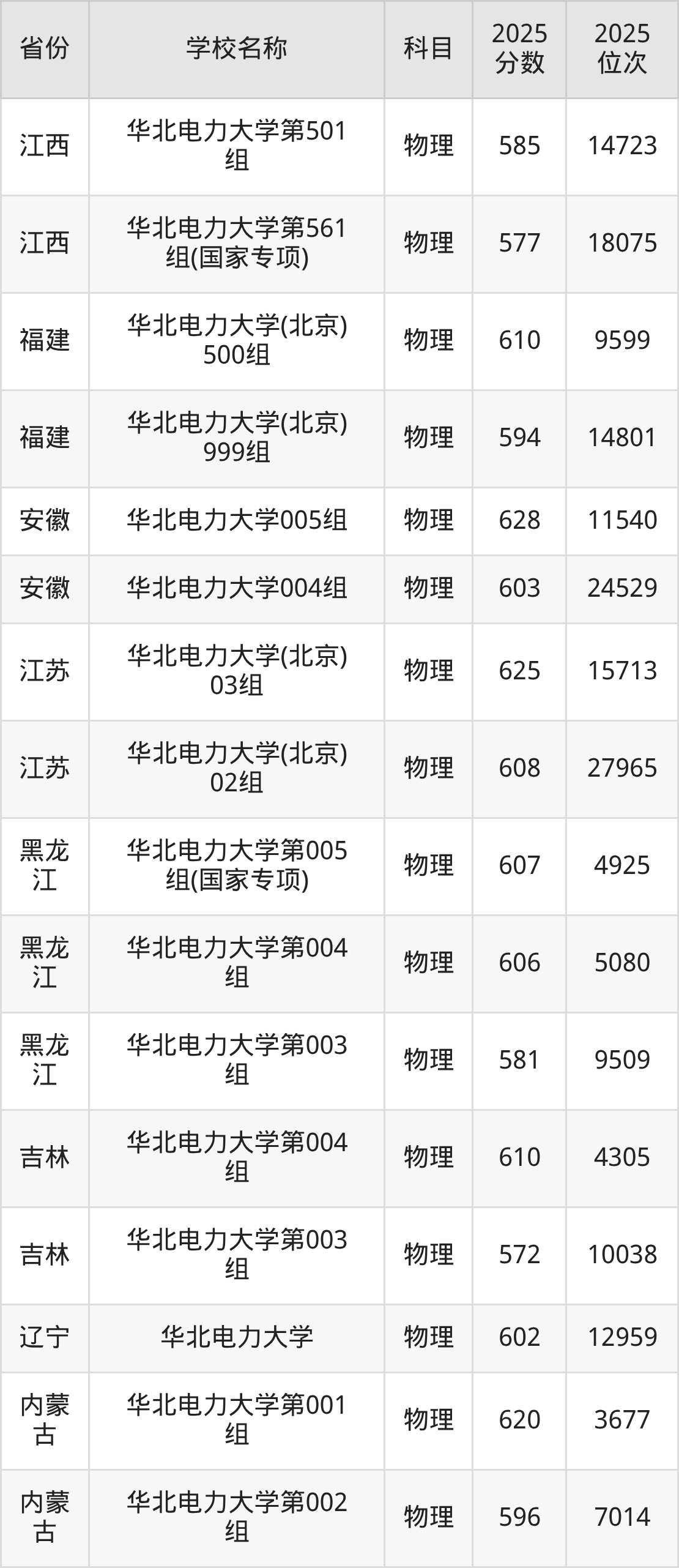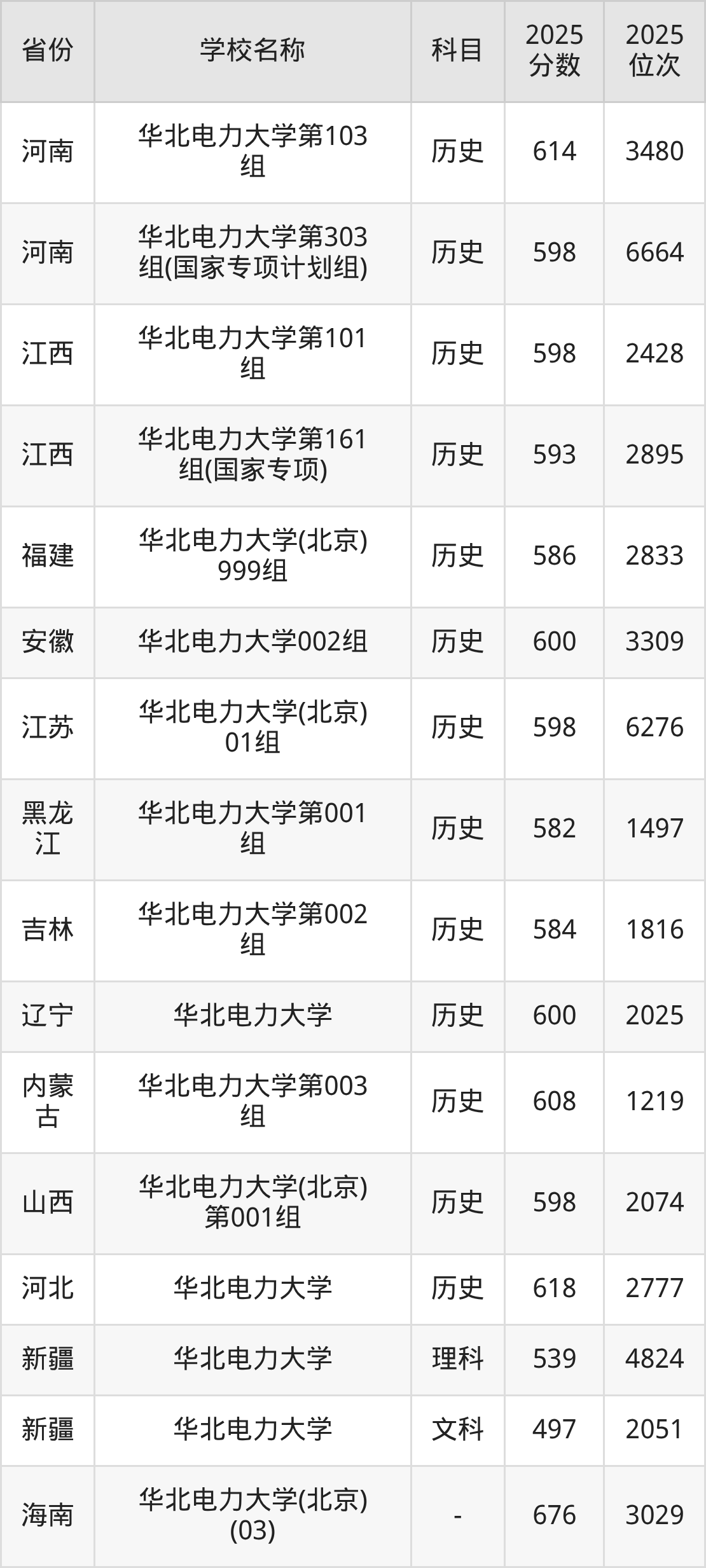 一、2025华北电力大学录取分数线