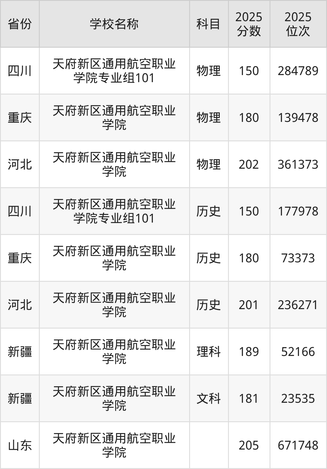 天府新区通用航空职业学院2025年有1个专业组面向四川省内首选了物理科目的考生招生: