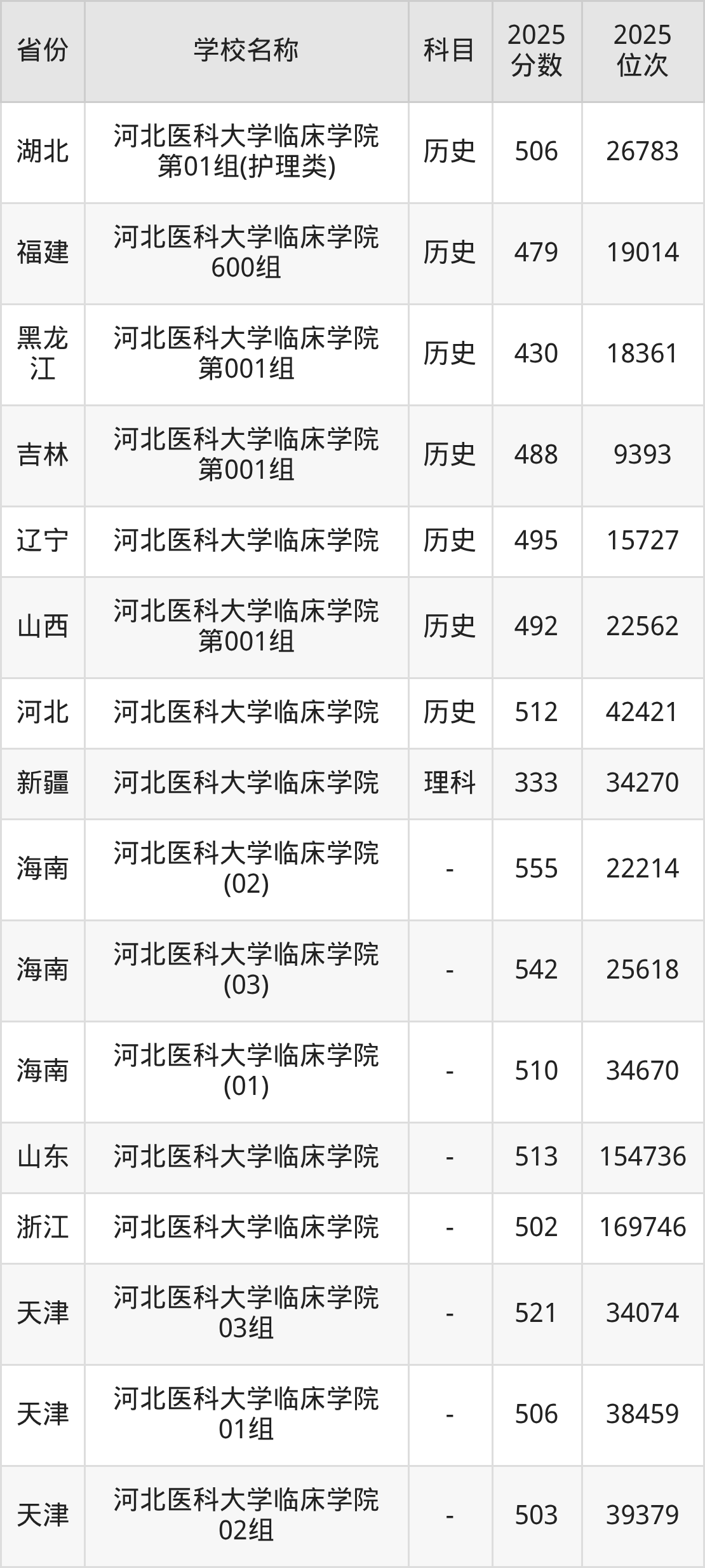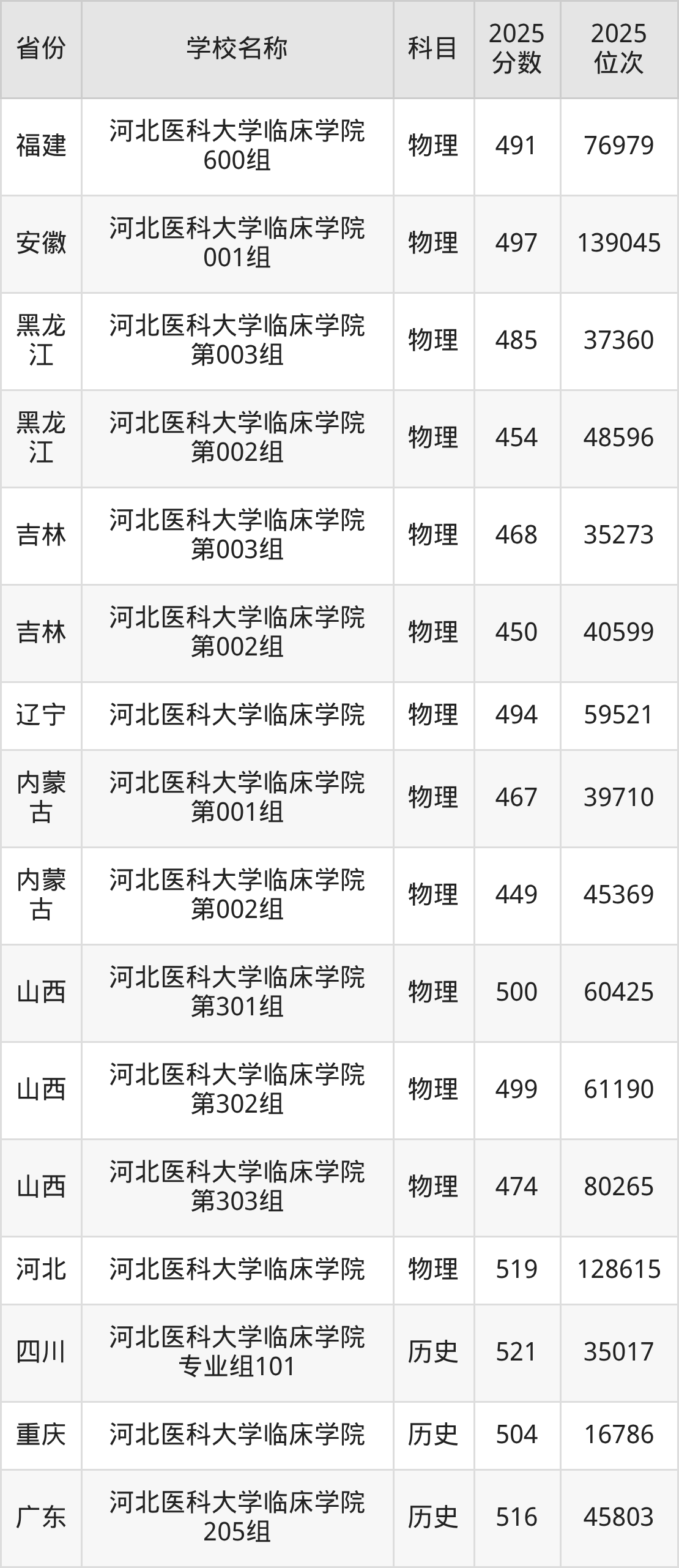 河北医科大学临床学院2025年面向河北省内首选了历史科目的考生招生: