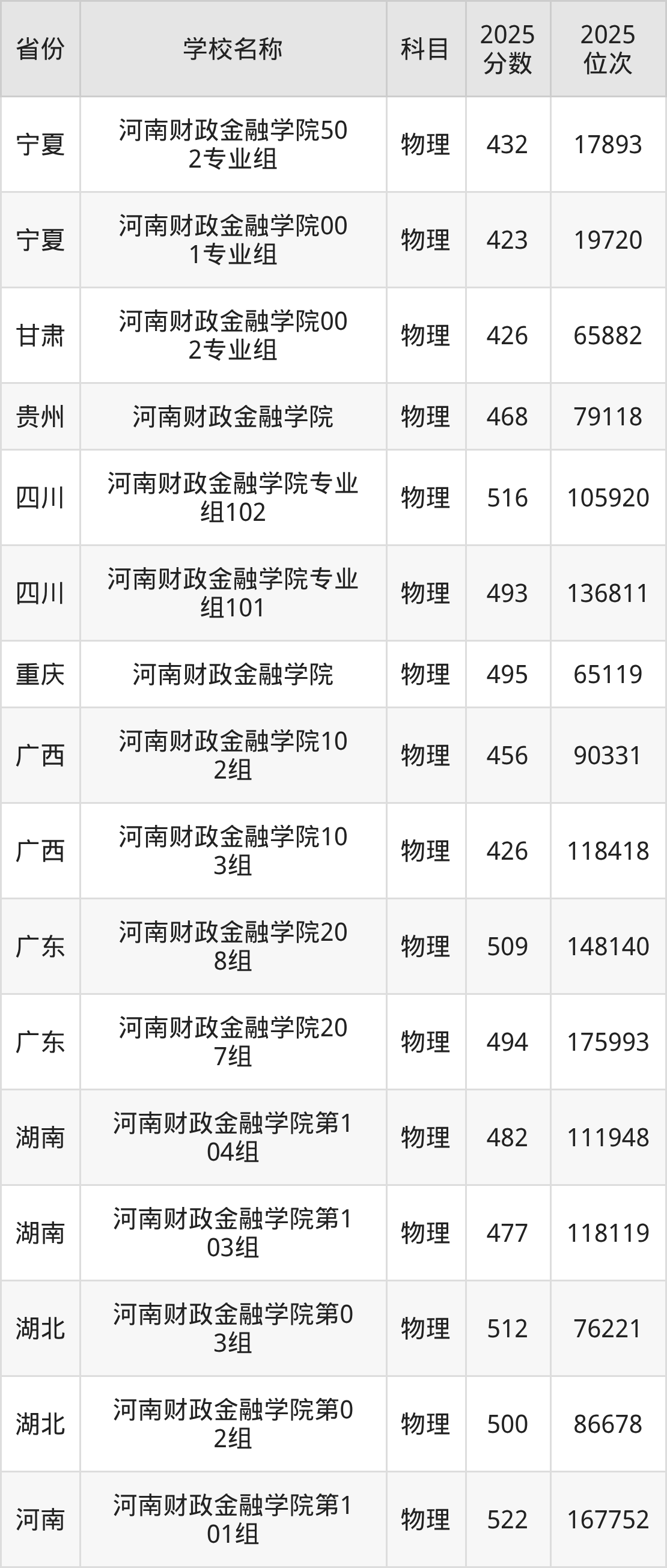 河南财政金融学院2025年有3个专业组面向河南省内首选了物理科目的考生招生: