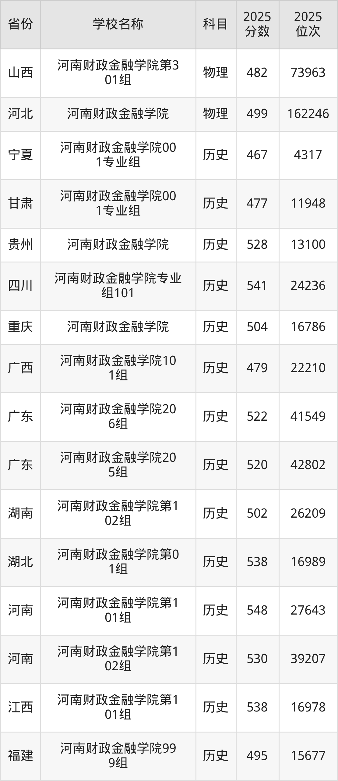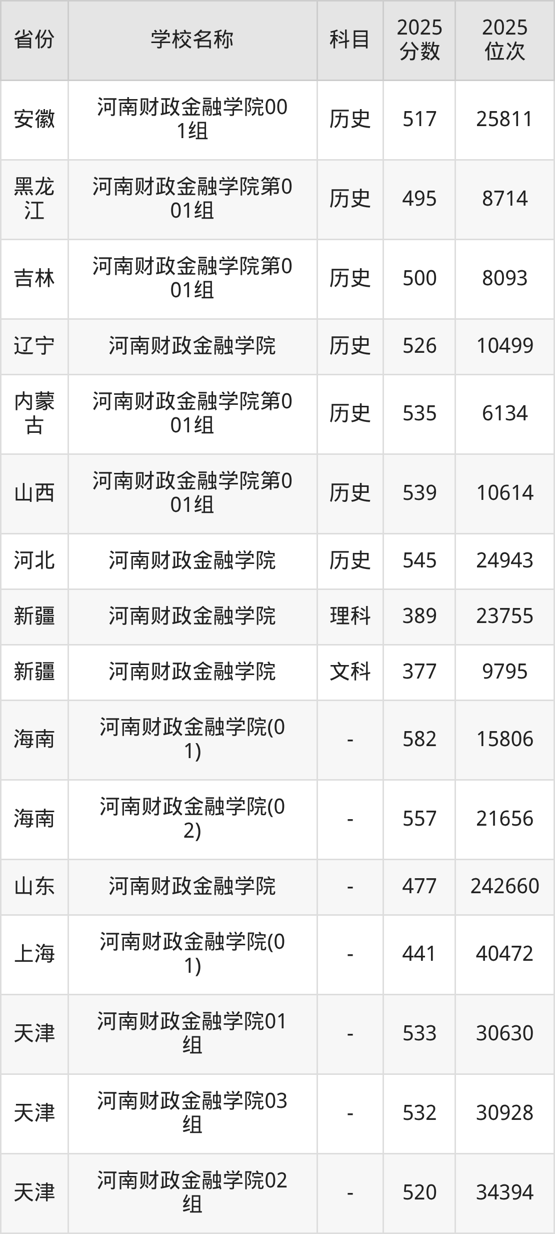二、河南财政金融学院各专业录取分数线