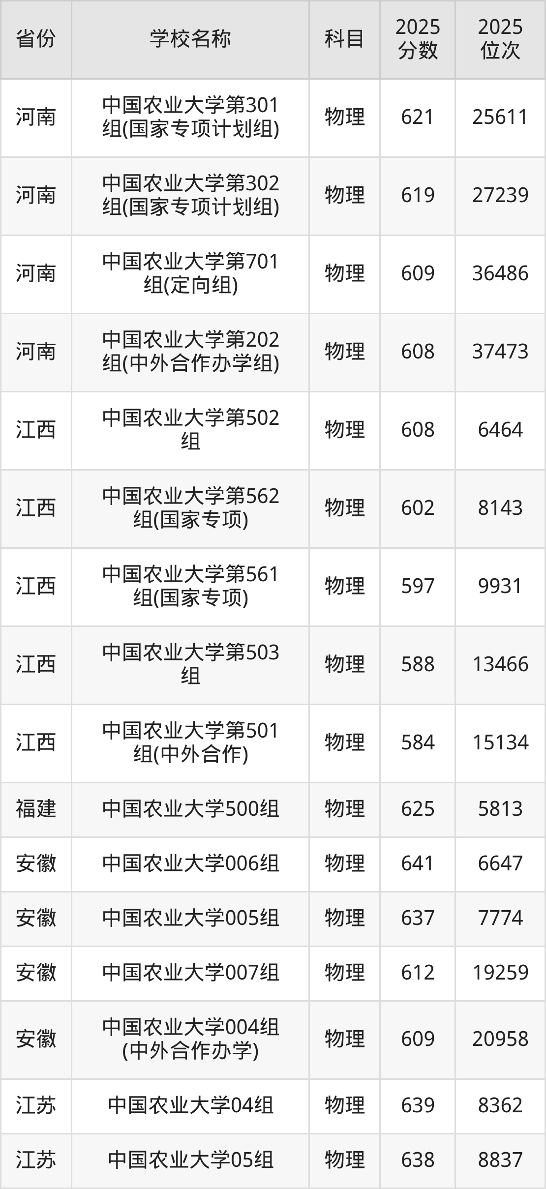 15、农业工程类专业:2025年最低623分、最低位次是11499