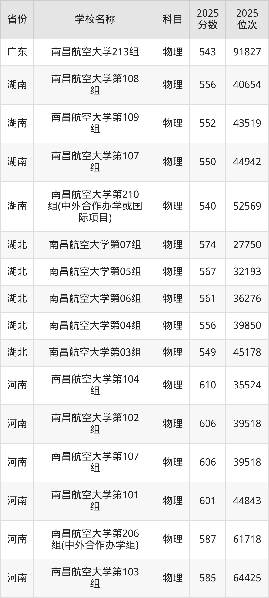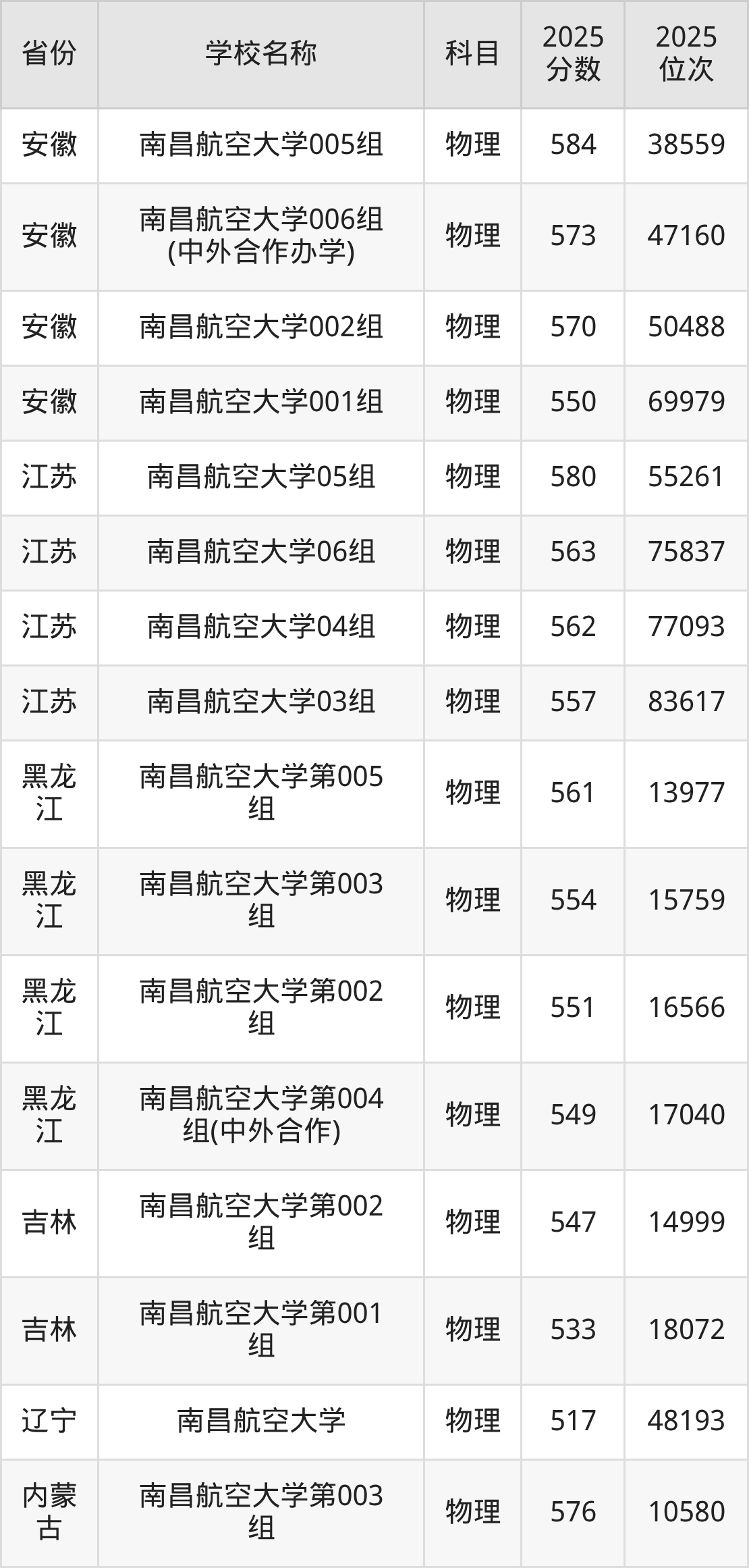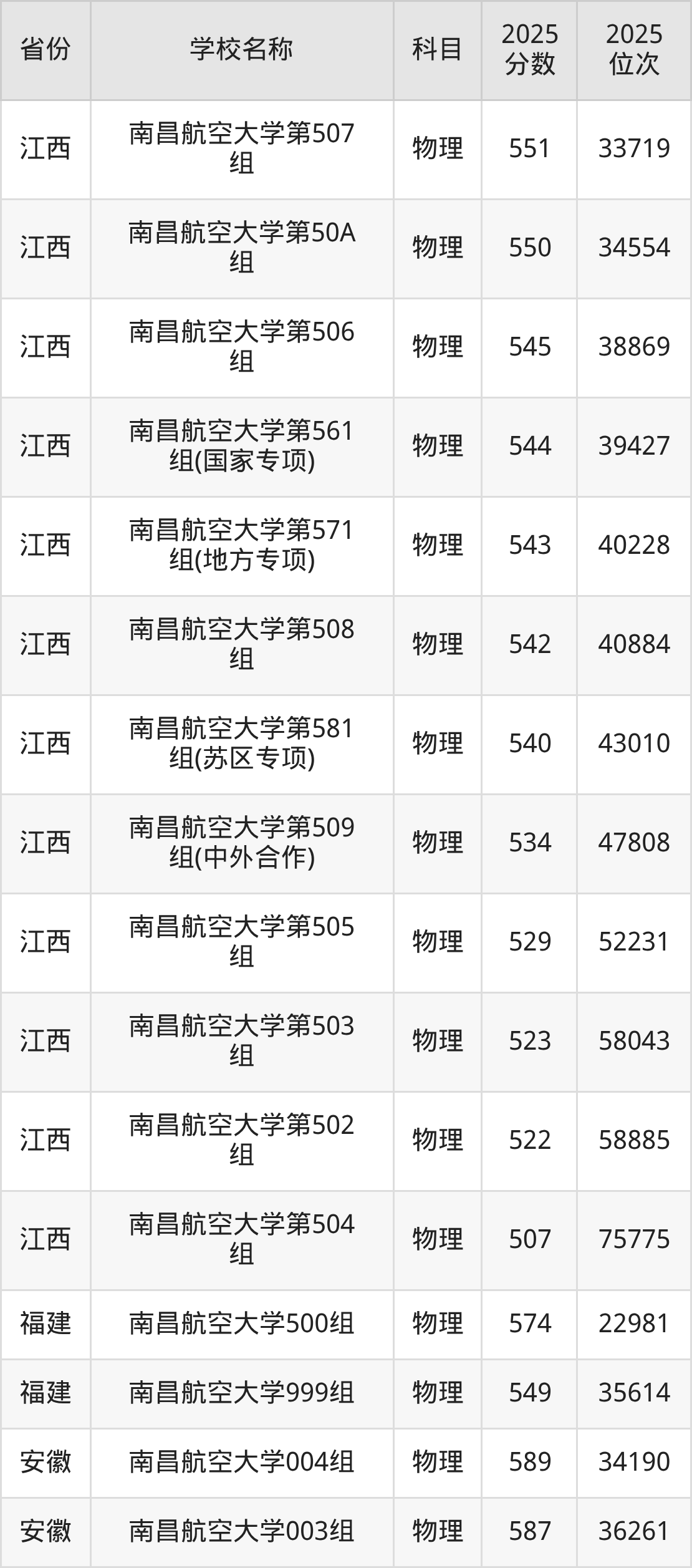 南昌航空大学2025年有13个专业组面向江西省内首选了物理科目的考生招生:
