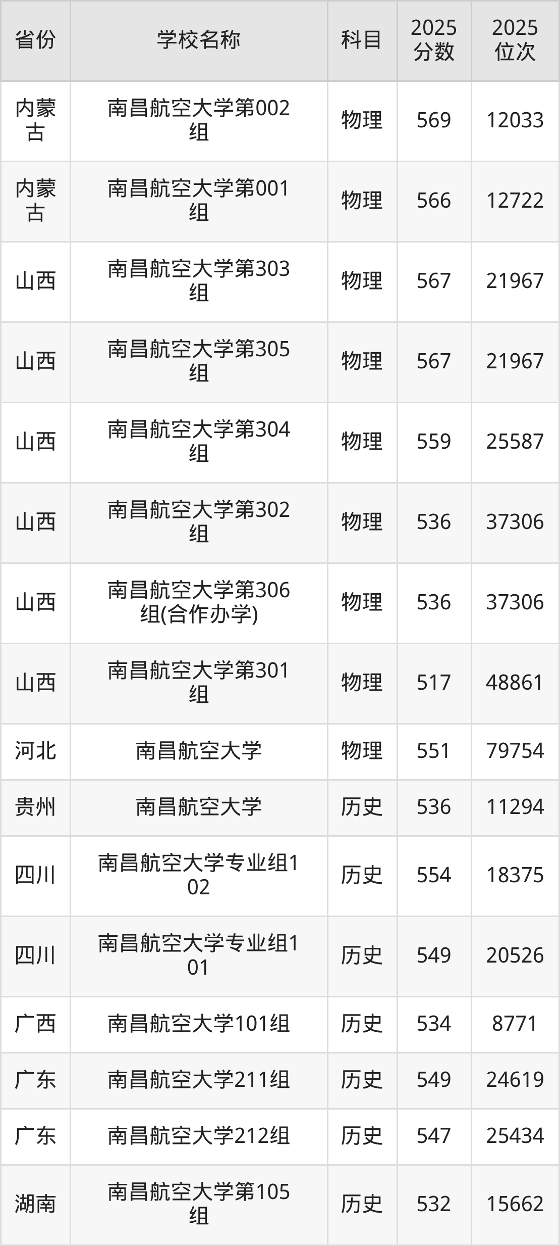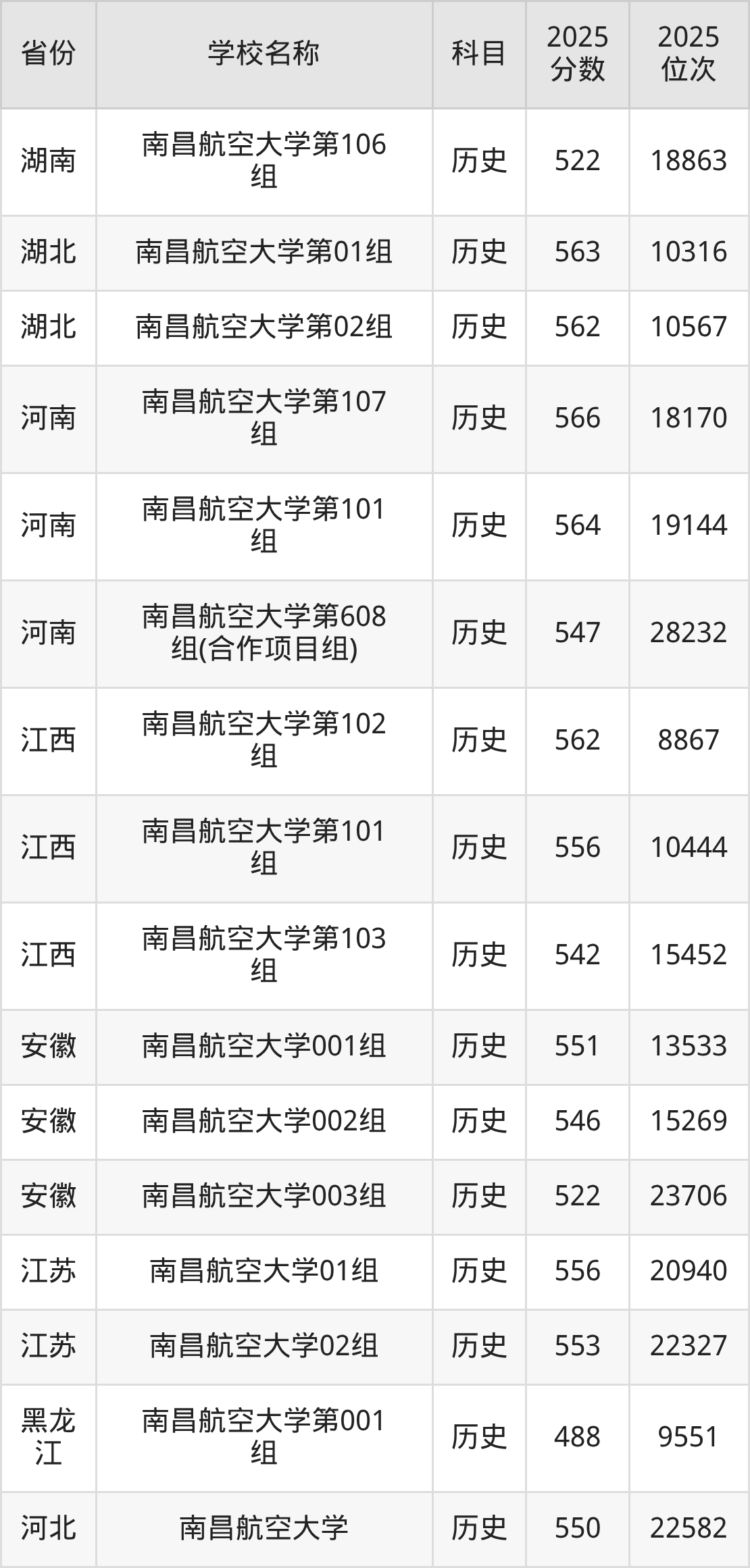 南昌航空大学2025年有3个专业组面向江西省内首选了历史科目的考生招生: