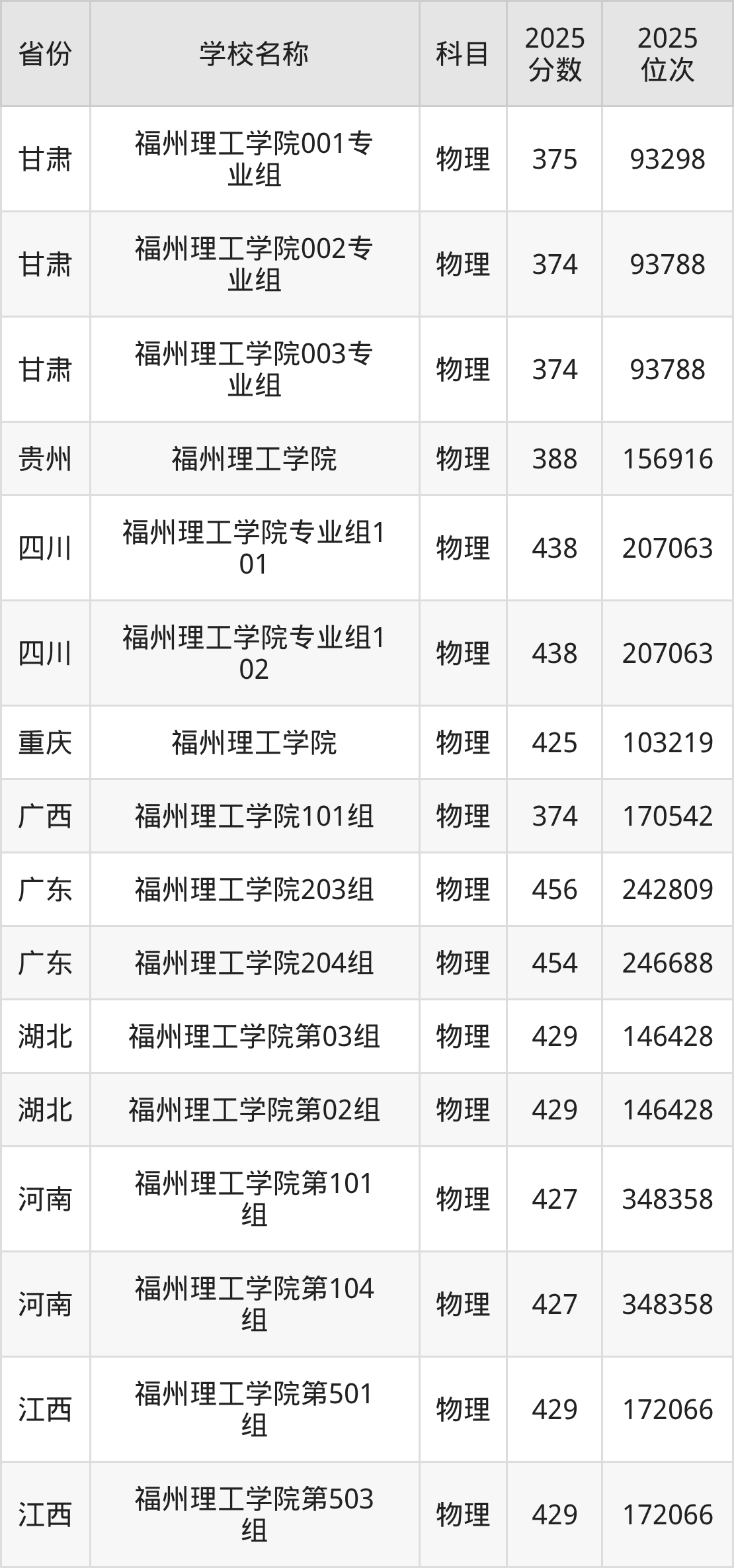 福州理工学院2025年有2个专业组面向福建省内首选了物理科目的考生招生: