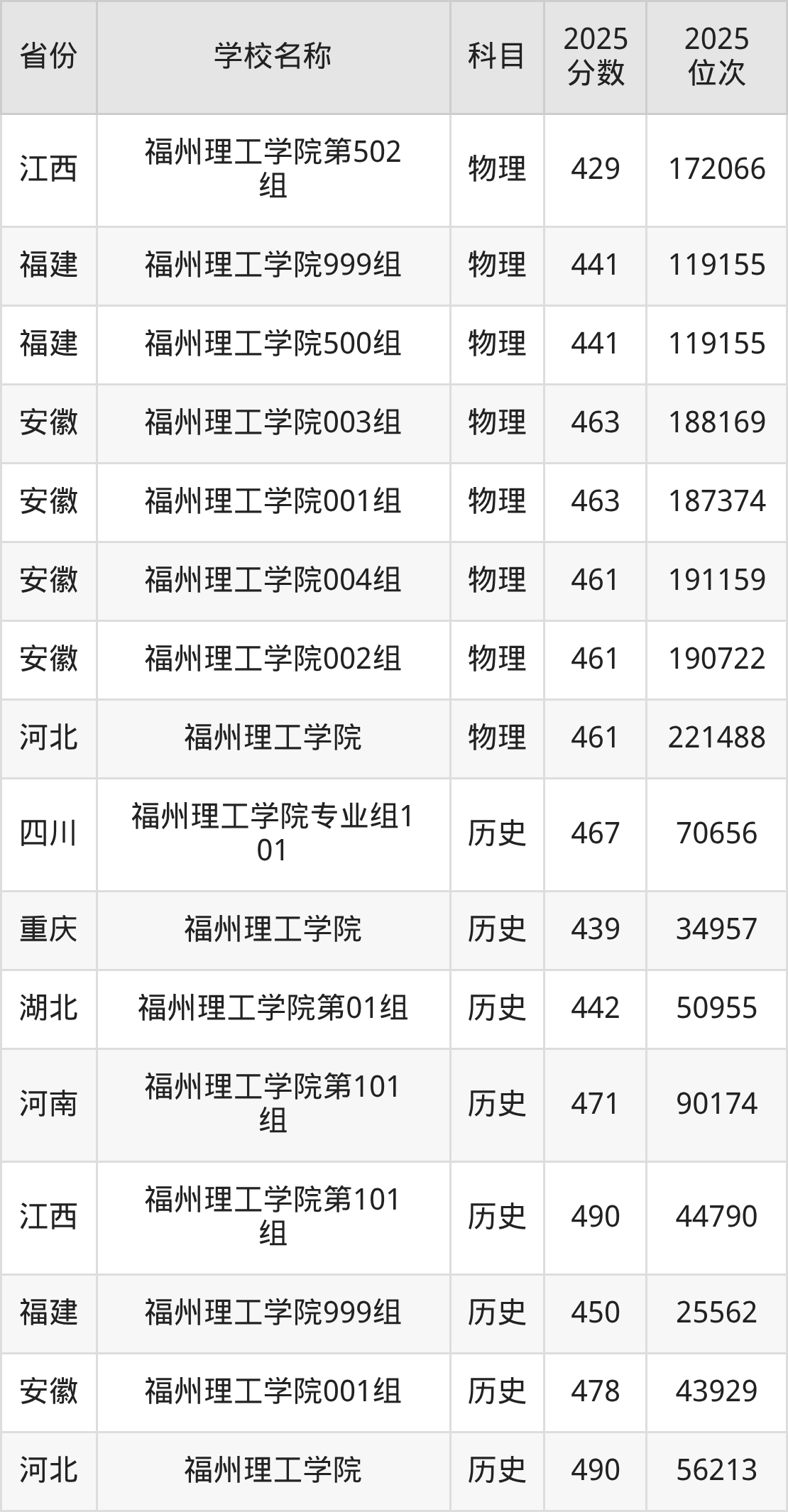 福州理工学院2025年有1个专业组面向福建省内首选了历史科目的考生招生: