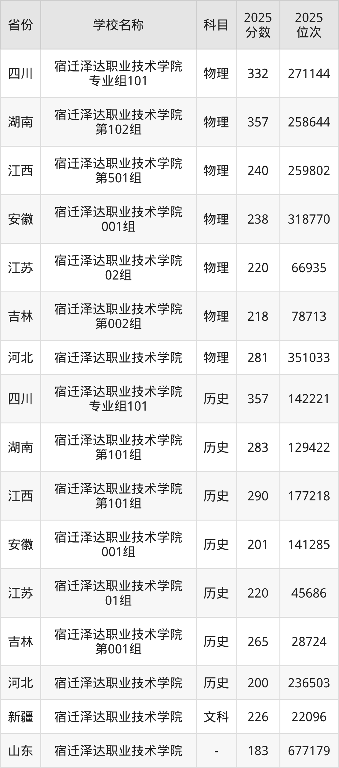 一、2025宿迁泽达职业技术学院录取分数线