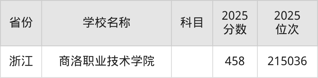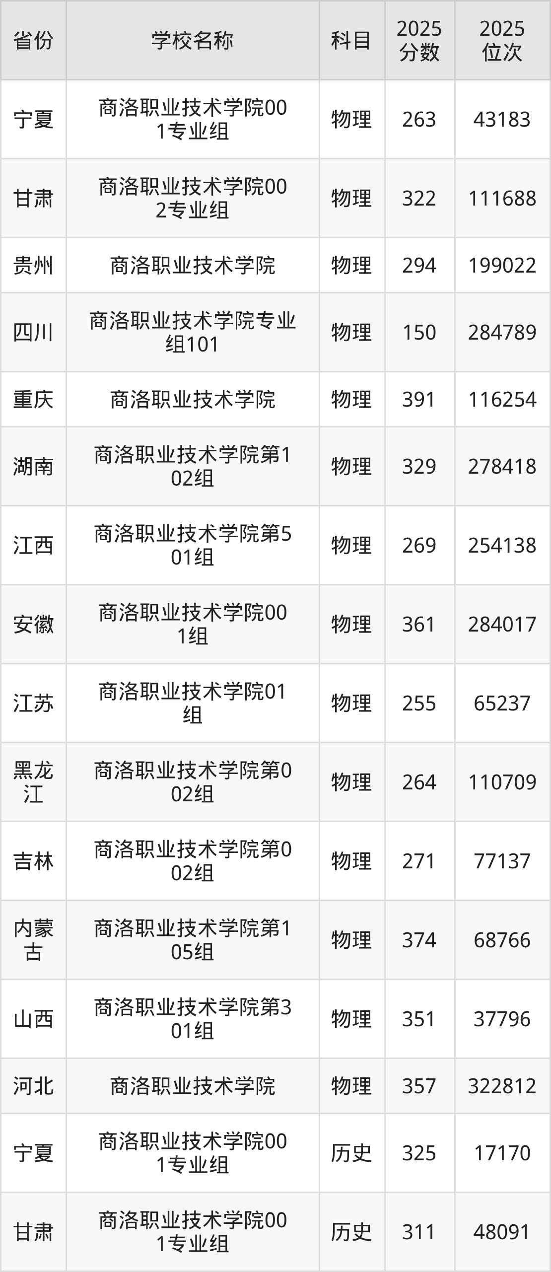 2025年商洛职业技术学院在全国各省专科的最低录取分数线在150~458分之间。浙江高考生最低458分能上商洛职业技术学院、重庆物理类高考生最低391分能上商洛职业技术学院……下文将展示商洛职业技术学院在全国19个高考省份中的专科最低投档录取分汇总!
