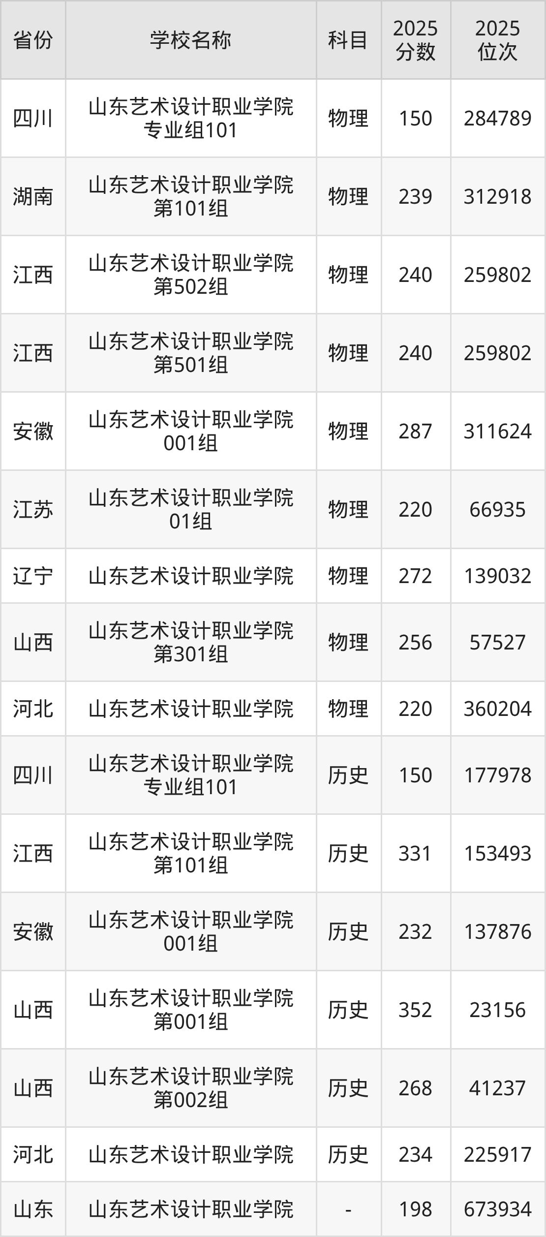 一、2025山东艺术设计职业学院录取分数线