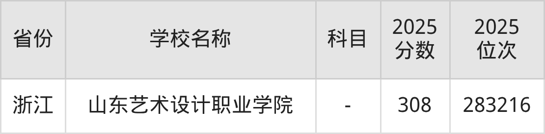 2025年山东艺术设计职业学院在全国各省专科的最低录取分数线在150~352分之间。浙江高考生最低308分能上山东艺术设计职业学院、安徽物理类高考生最低287分能上山东艺术设计职业学院……下文将展示山东艺术设计职业学院在全国10个高考省份中的专科最低投档录取分汇总!