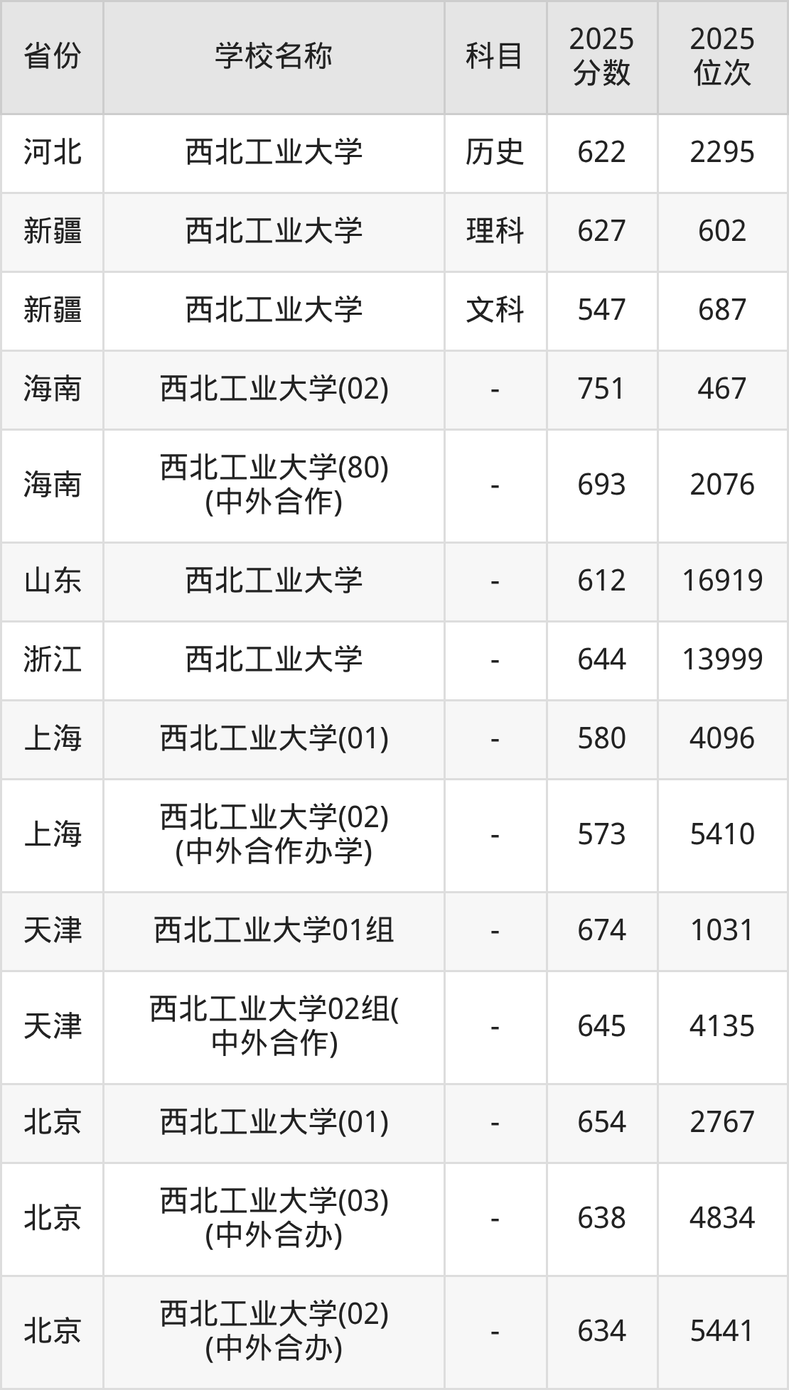 2025年西北工业大学在全国各省本科的最低录取分数线在547~751分之间。海南高考生最低751分能上西北工业大学、天津高考生最低674分能上西北工业大学……下文将展示西北工业大学在全国27个高考省份中的本科最低投档录取分汇总!