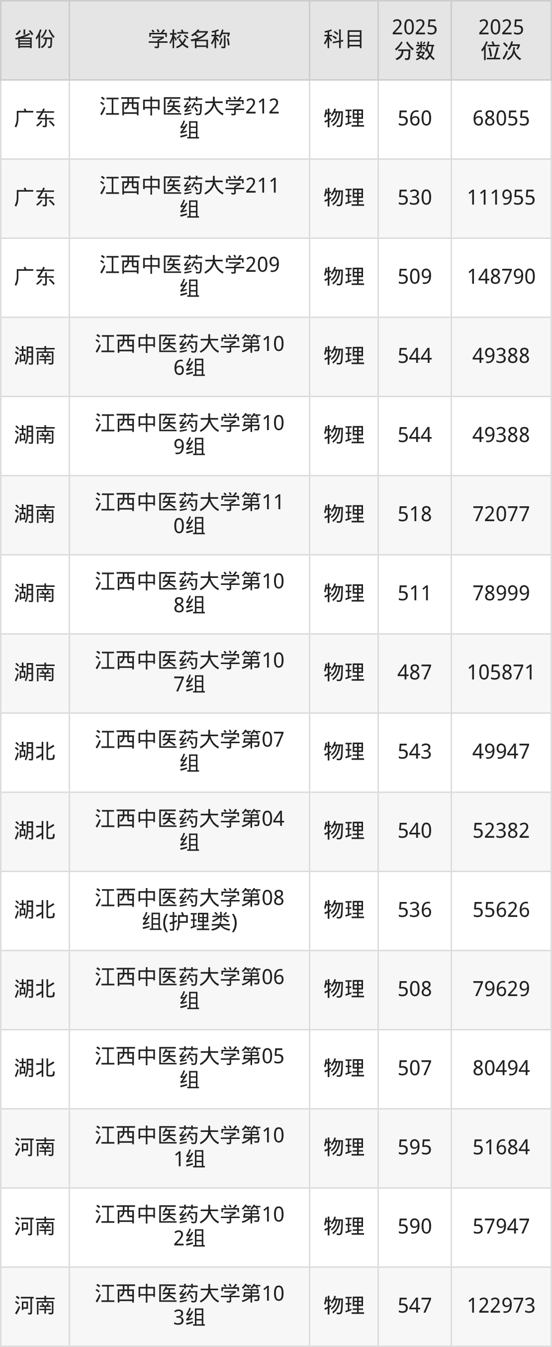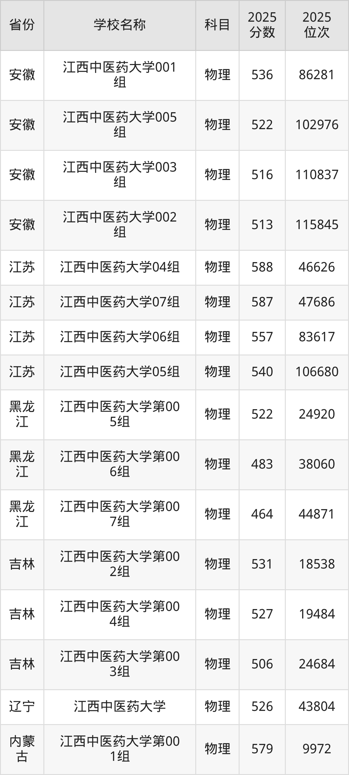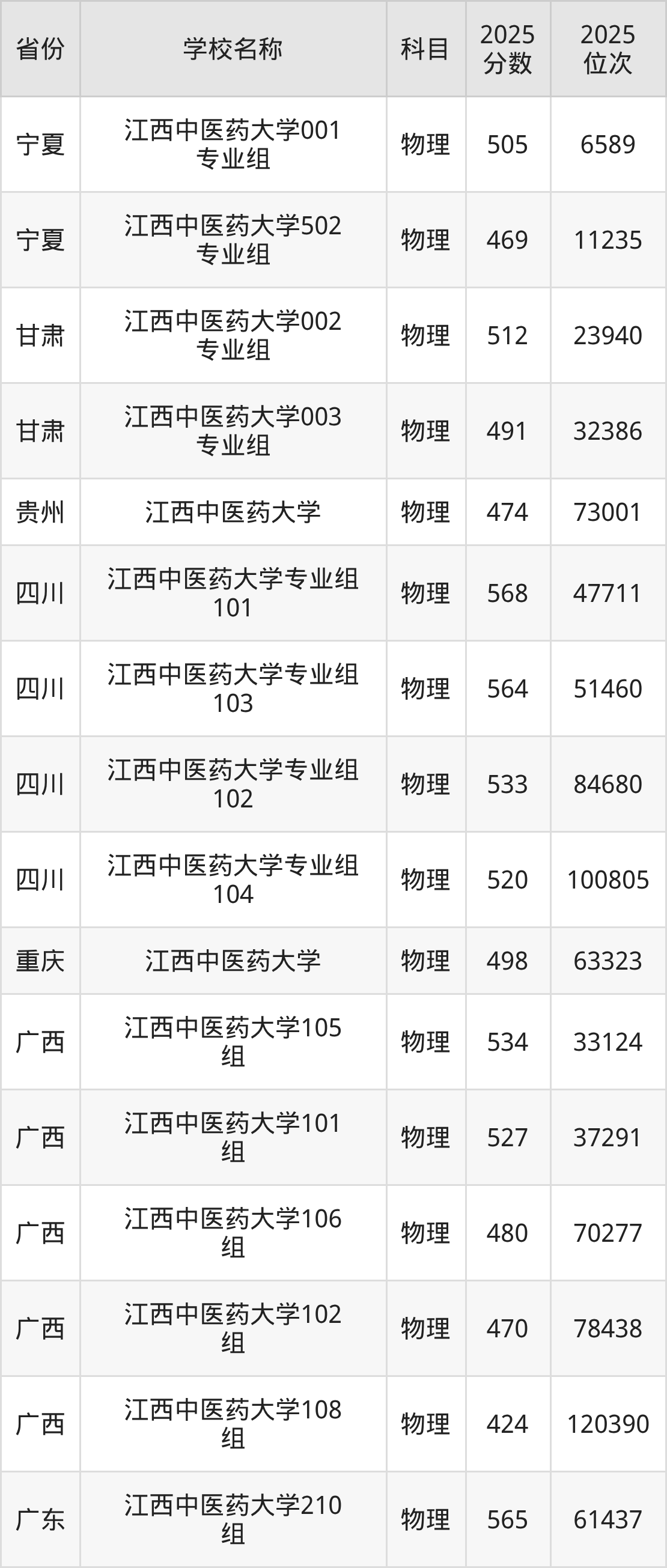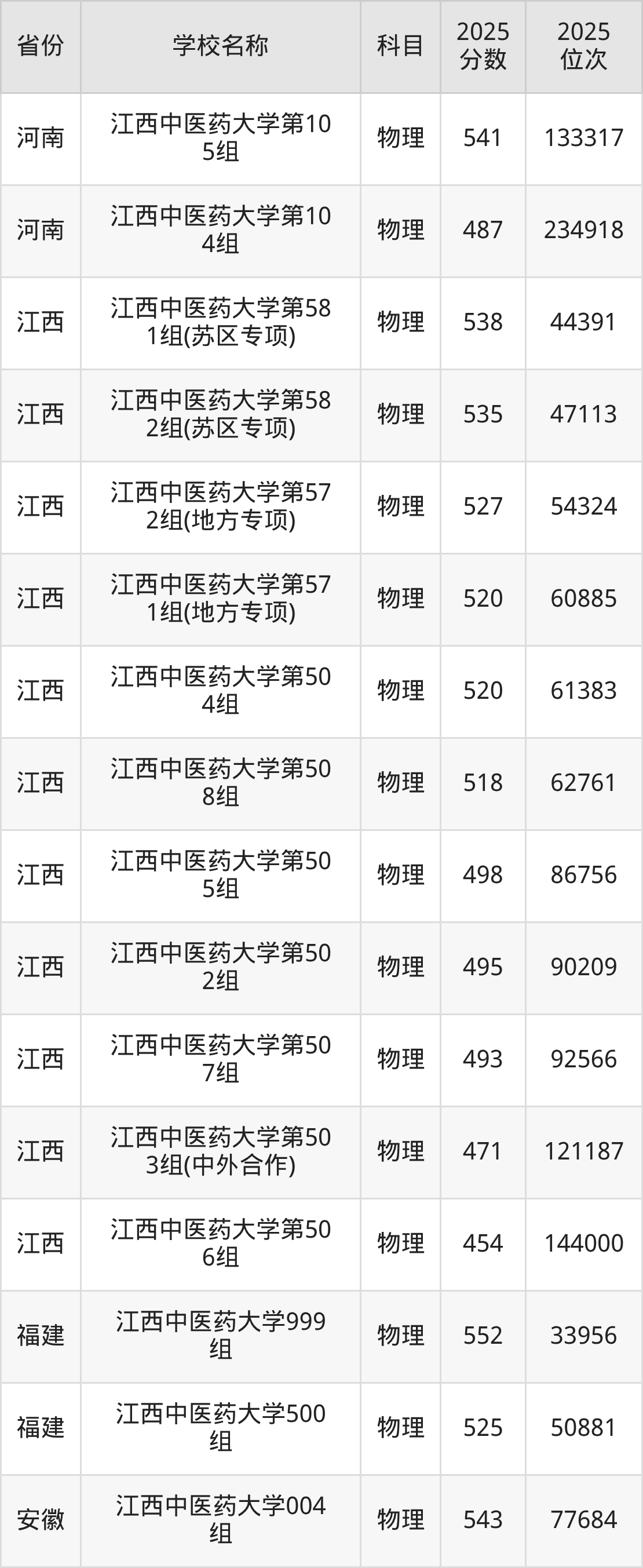 江西中医药大学2025年有12个专业组面向江西省内首选了物理科目的考生招生: