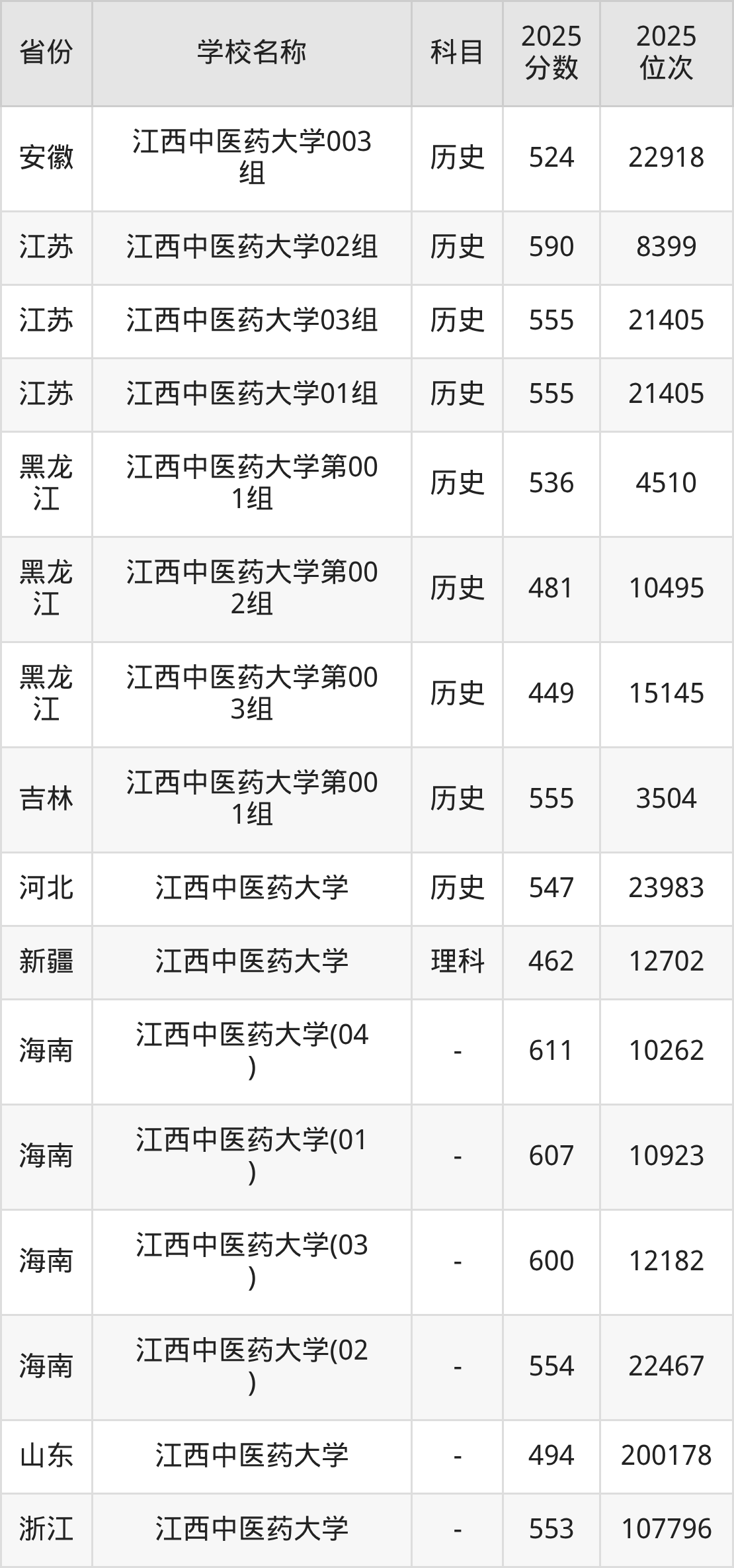 2025年江西中医药大学在全国各省本科的最低录取分数线在424~611分之间。海南高考生最低611分能上江西中医药大学、天津高考生最低599分能上江西中医药大学……下文将展示江西中医药大学在全国27个高考省份中的本科最低投档录取分汇总!