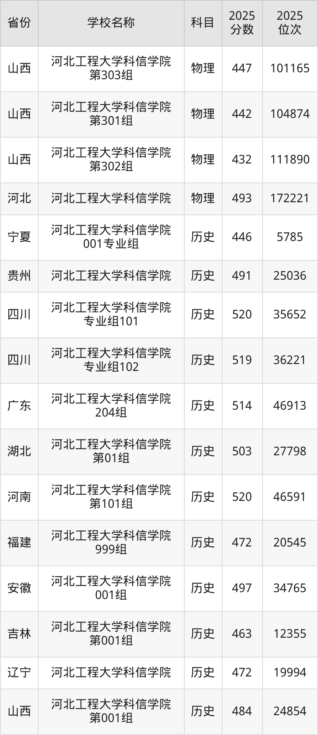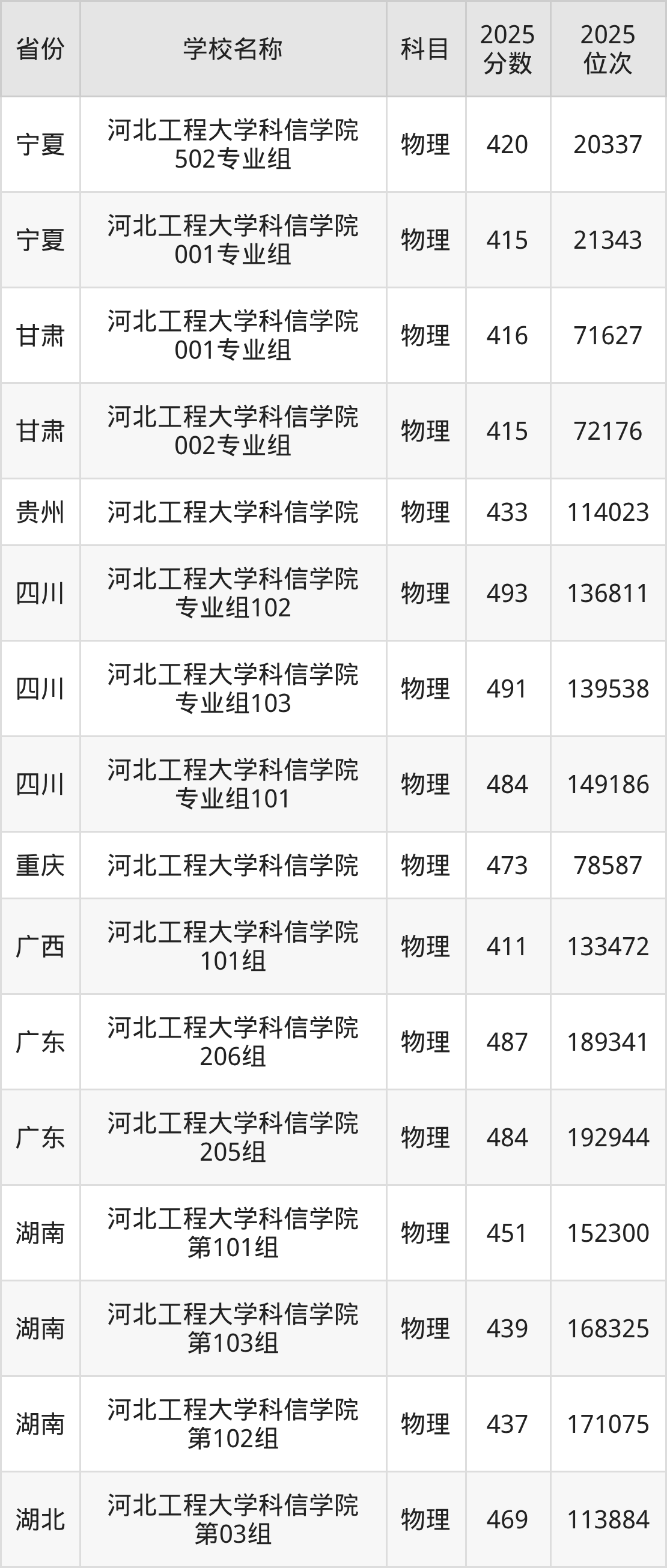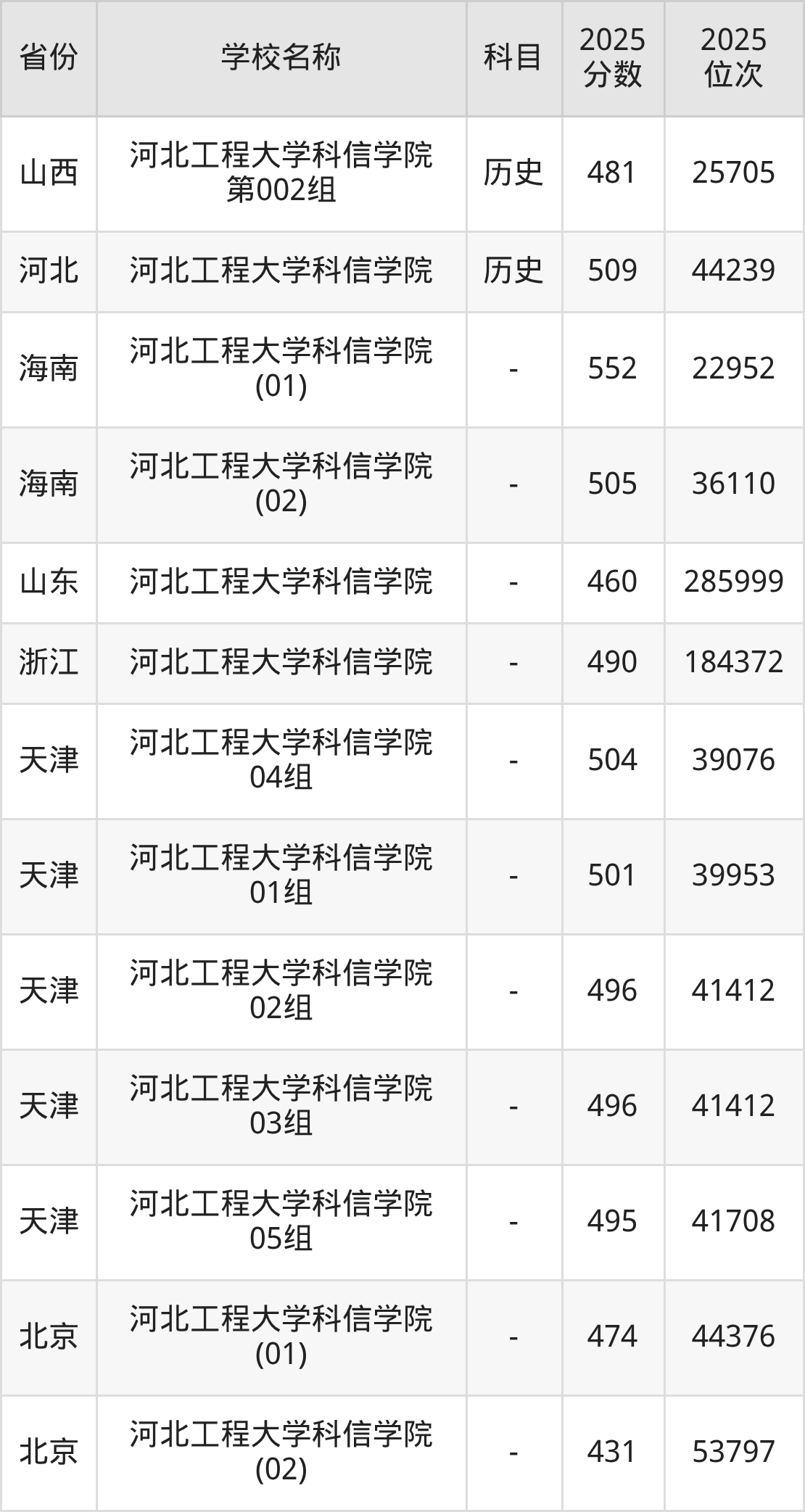 2025年河北工程大学科信学院在全国各省本科的最低录取分数线在402~552分之间。海南高考生最低552分能上河北工程大学科信学院、天津高考生最低504分能上河北工程大学科信学院……下文将展示河北工程大学科信学院在全国23个高考省份中的本科最低投档录取分汇总!