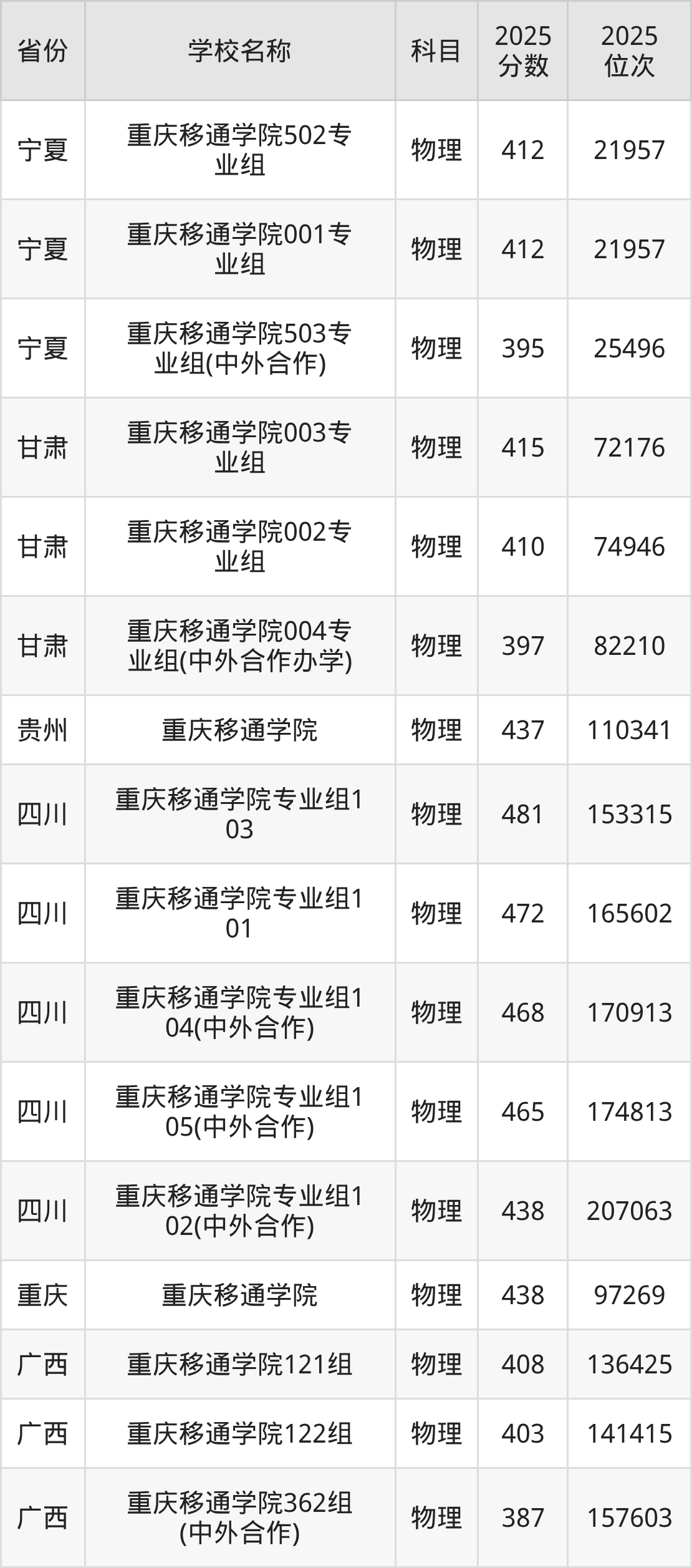 重庆移通学院2025年面向重庆市内首选了物理科目的考生招生: