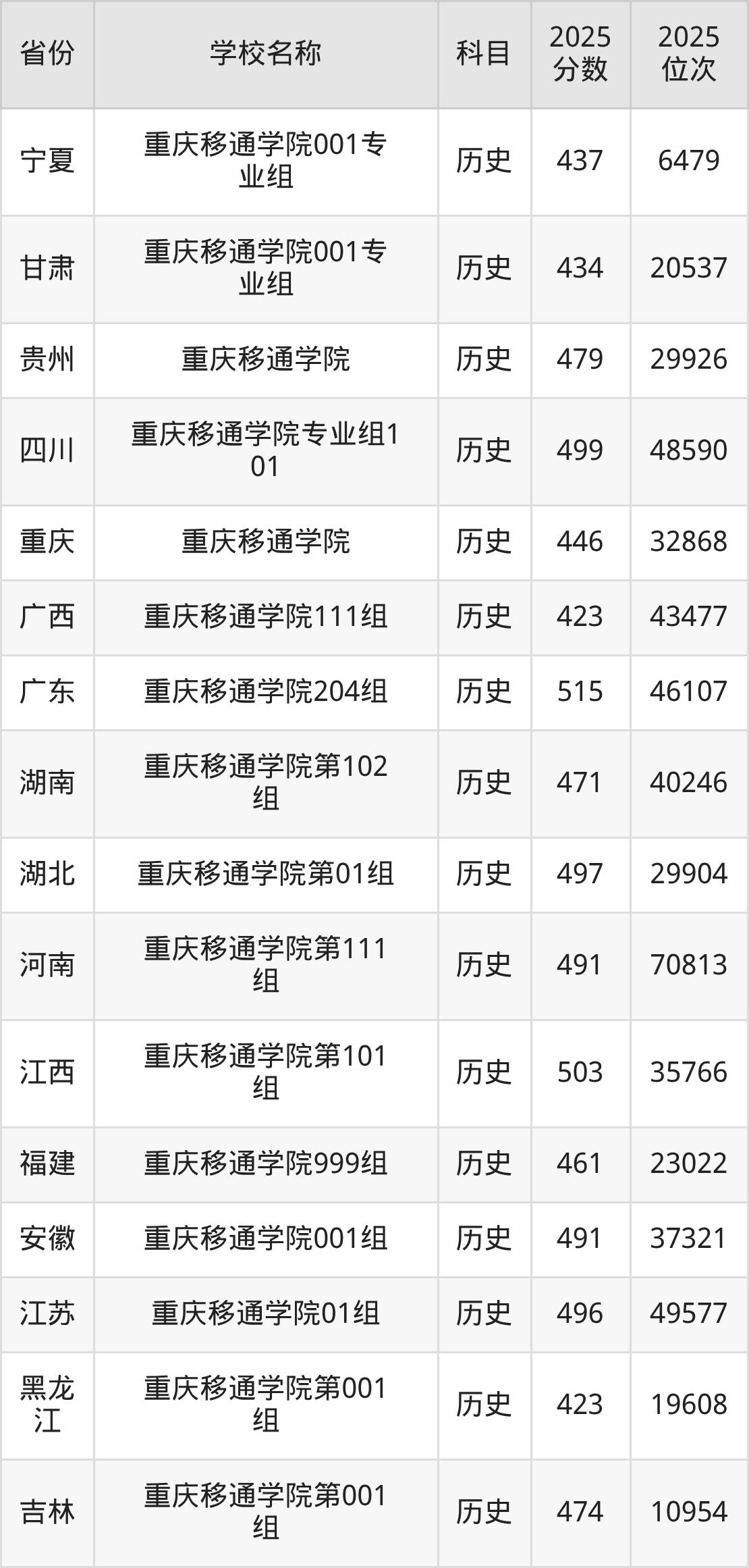 重庆移通学院2025年面向重庆市内首选了历史科目的考生招生: