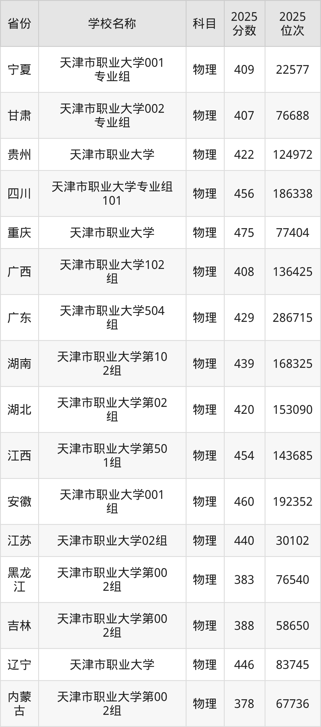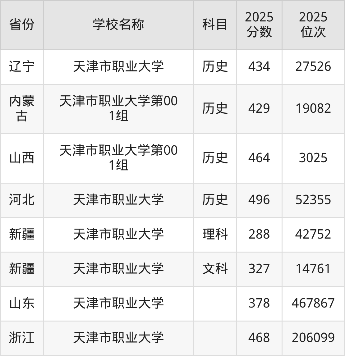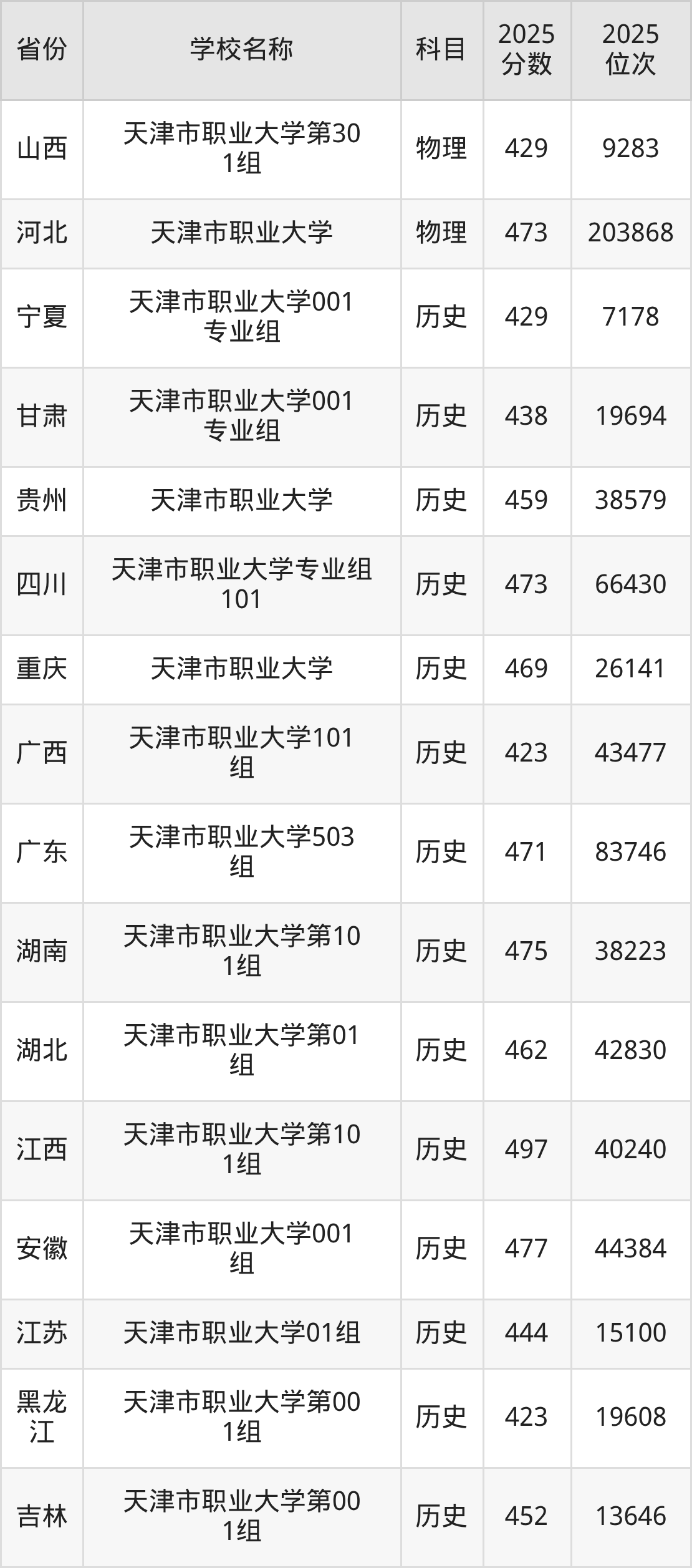 二、天津市职业大学各专业录取分数线
