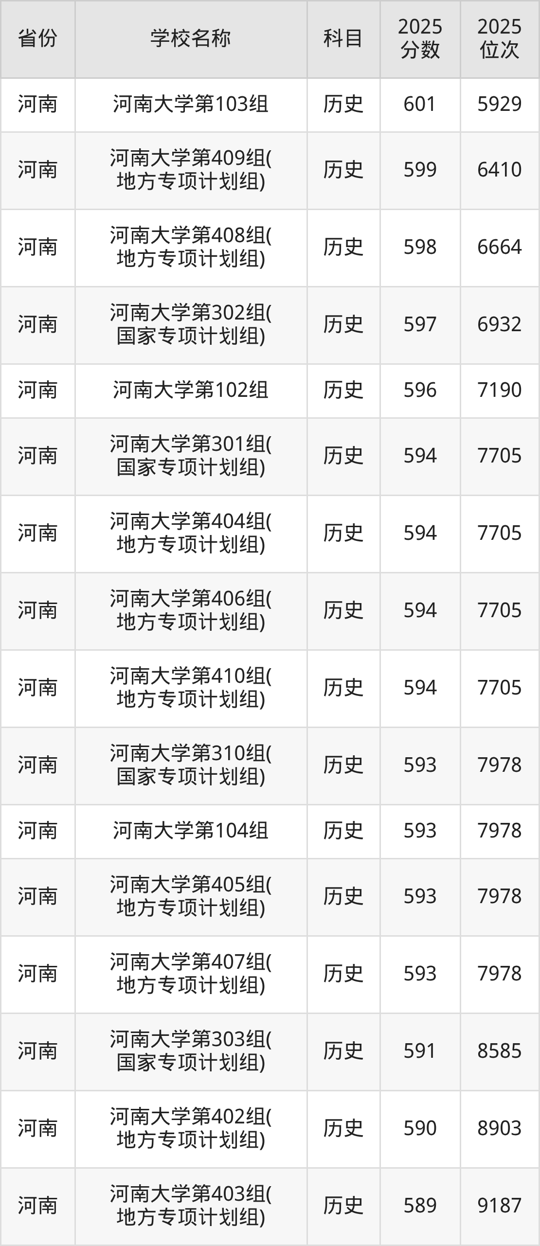 河南大学2025年有27个专业组面向河南省内首选了历史科目的考生招生: