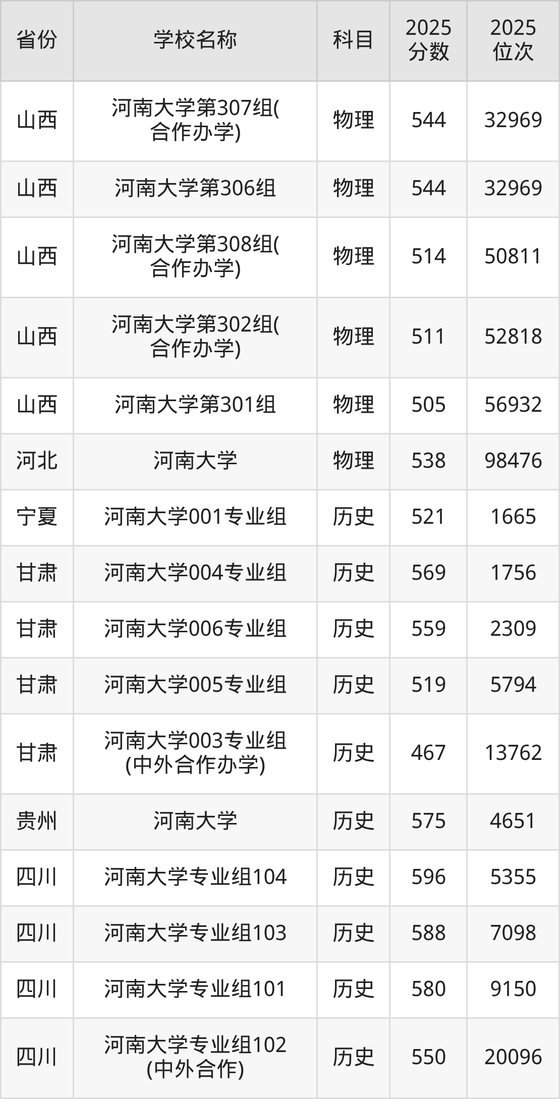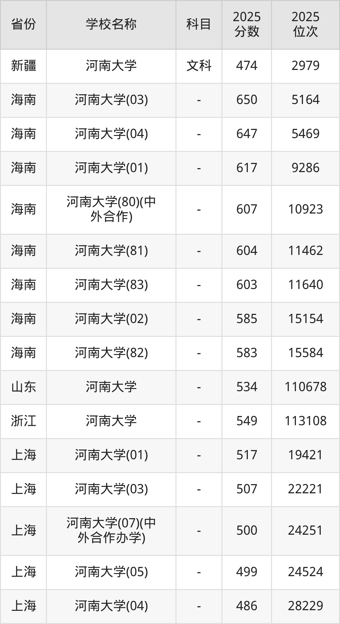 2025年河南大学在全国各省本科的最低录取分数线在421~650分之间。海南高考生最低650分能上河南大学、河南物理类高考生最低627分能上河南大学……下文将展示河南大学在全国27个高考省份中的本科最低投档录取分汇总!