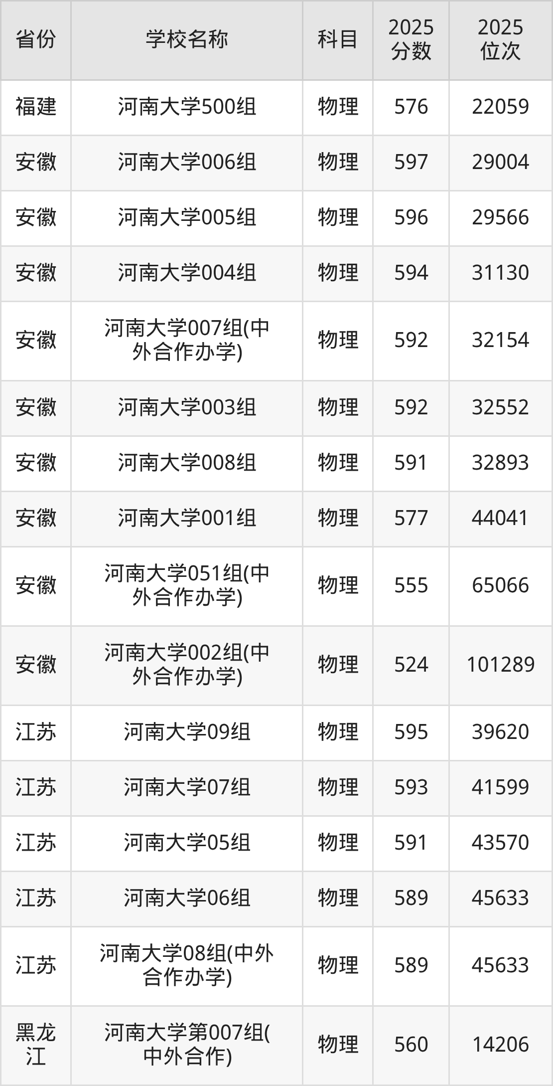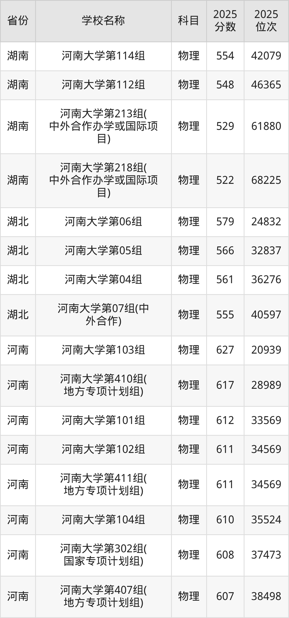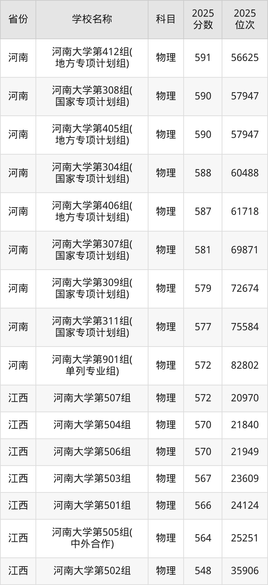 河南大学2025年有34个专业组面向河南省内首选了物理科目的考生招生: