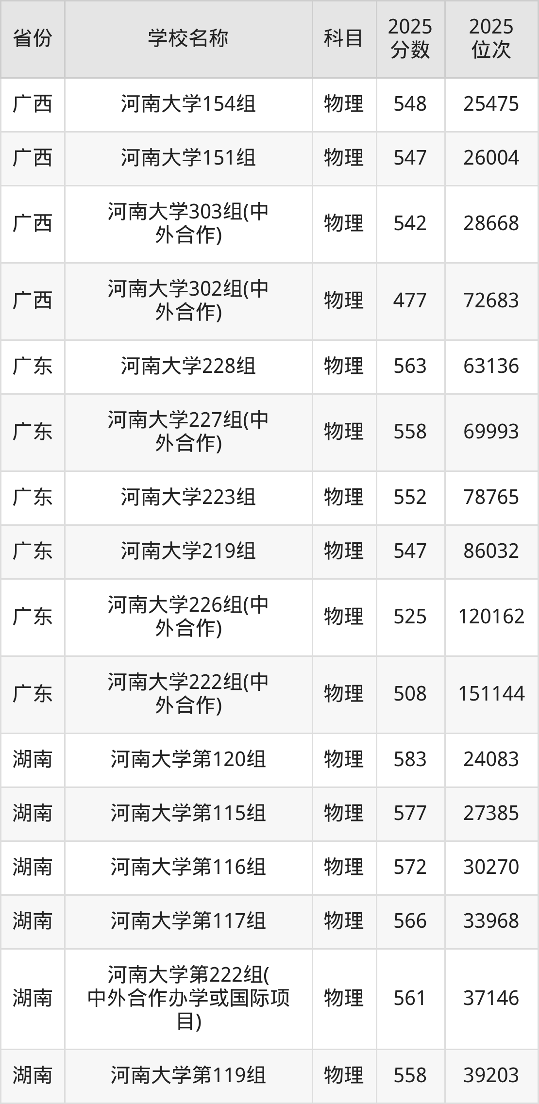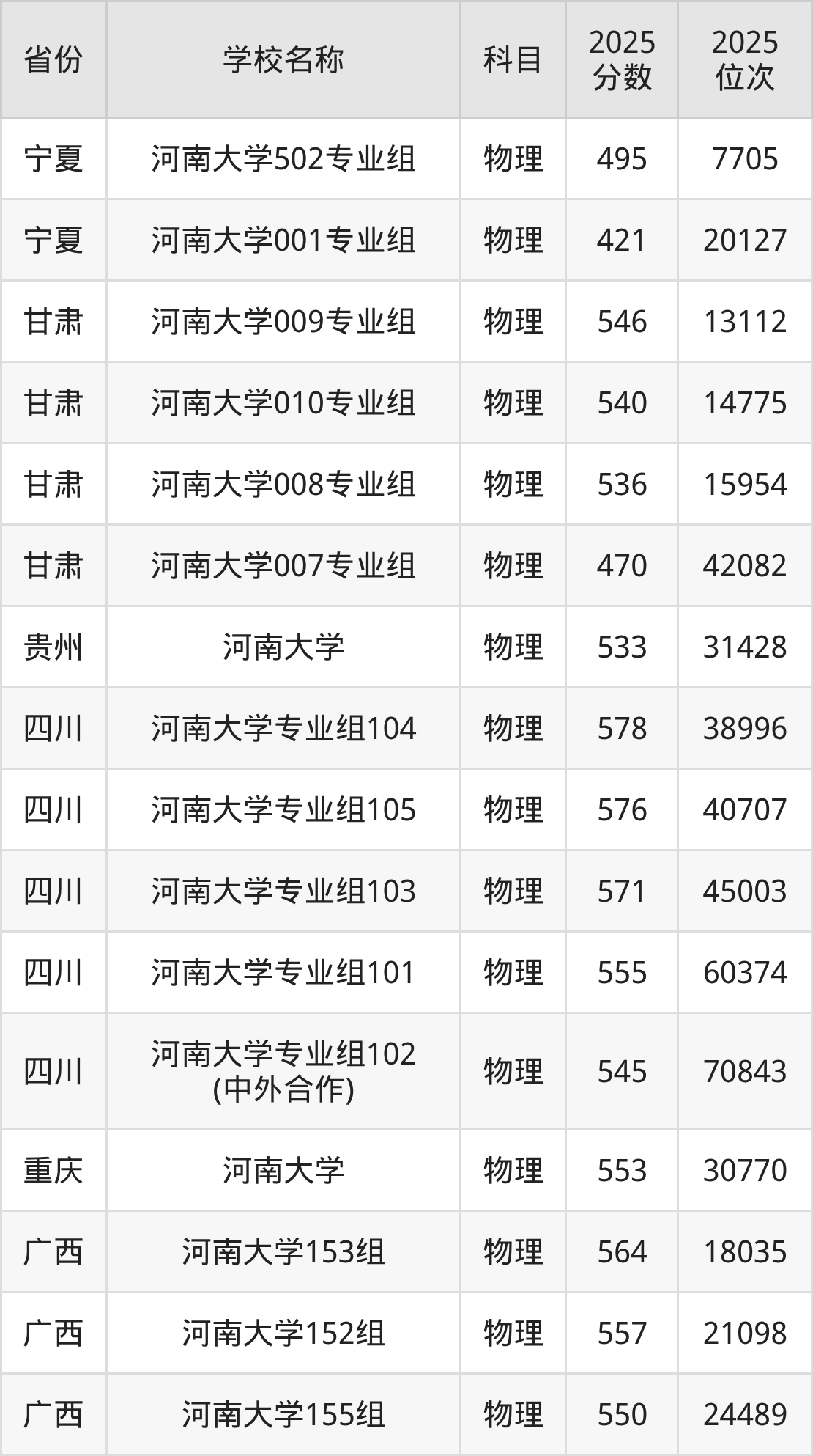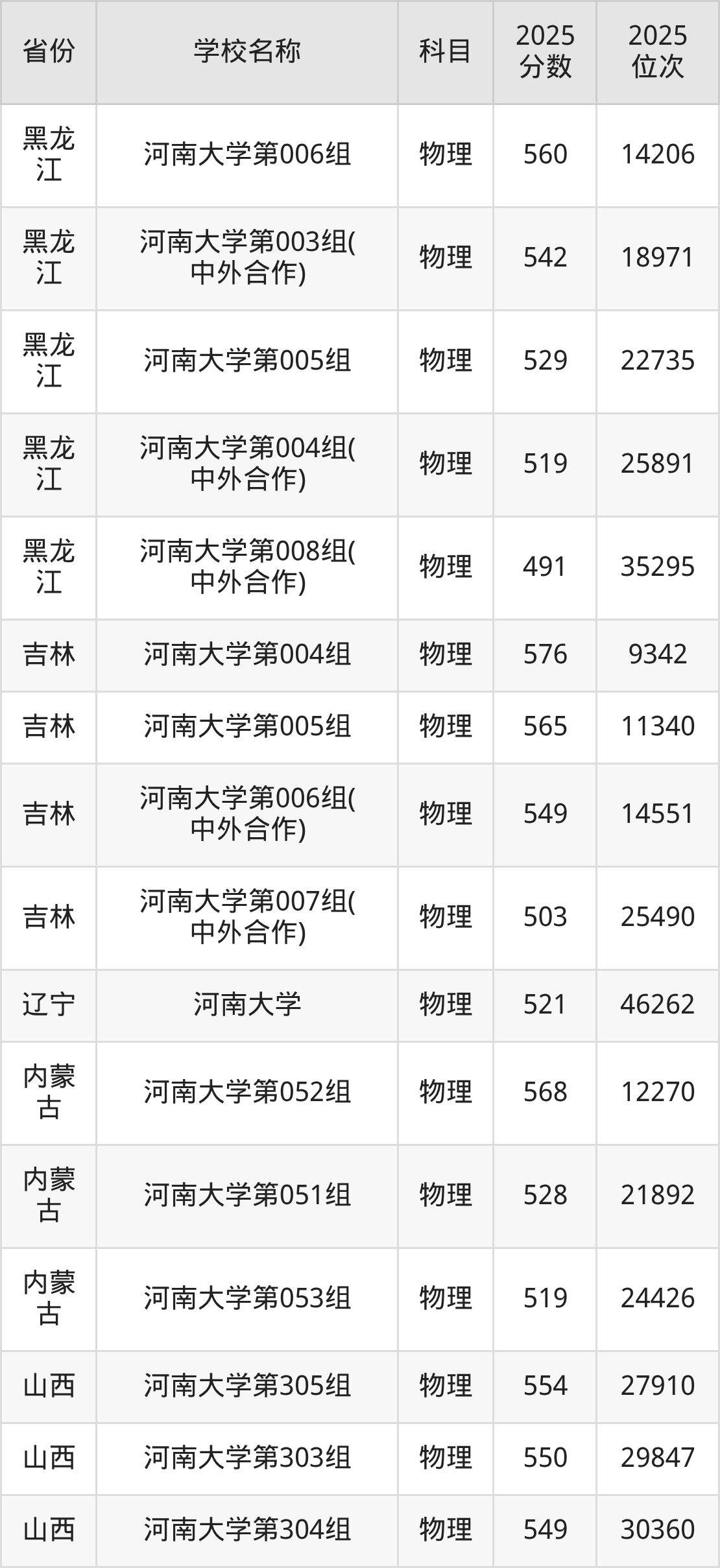 河南大学2025年有34个专业组面向河南省内首选了物理科目的考生招生: