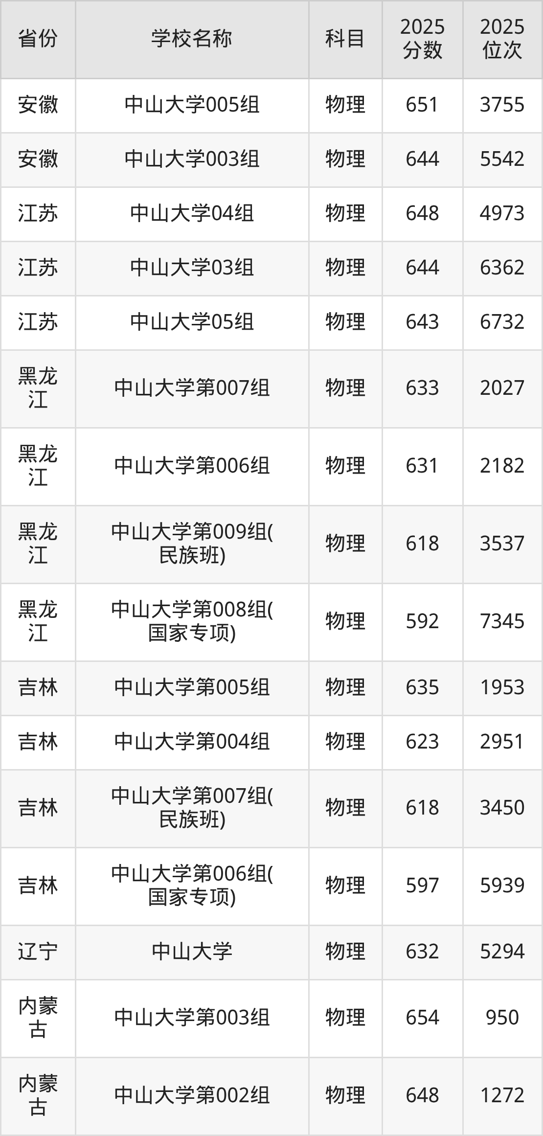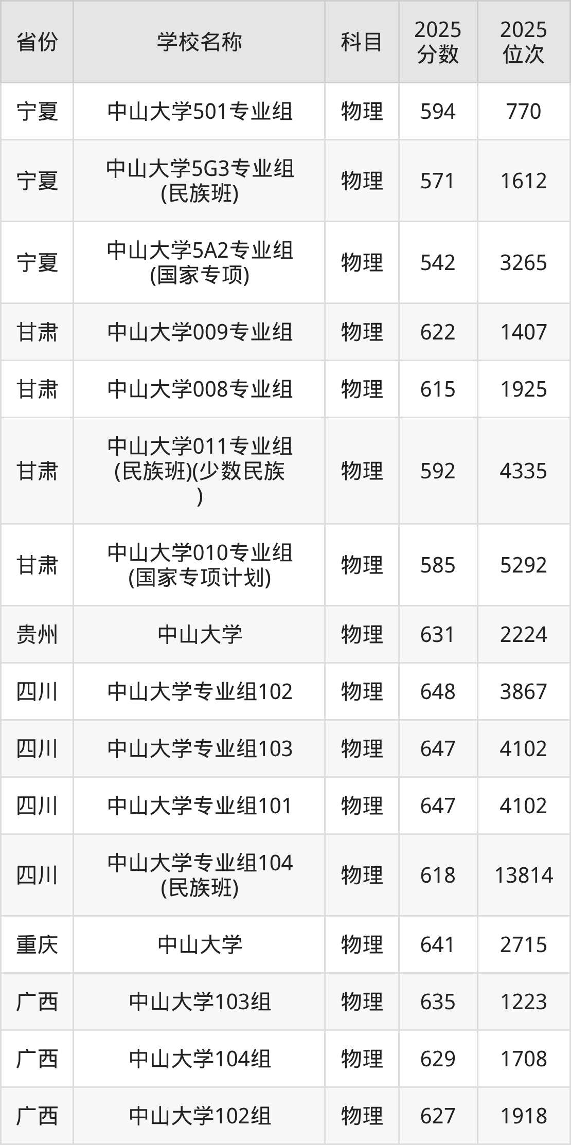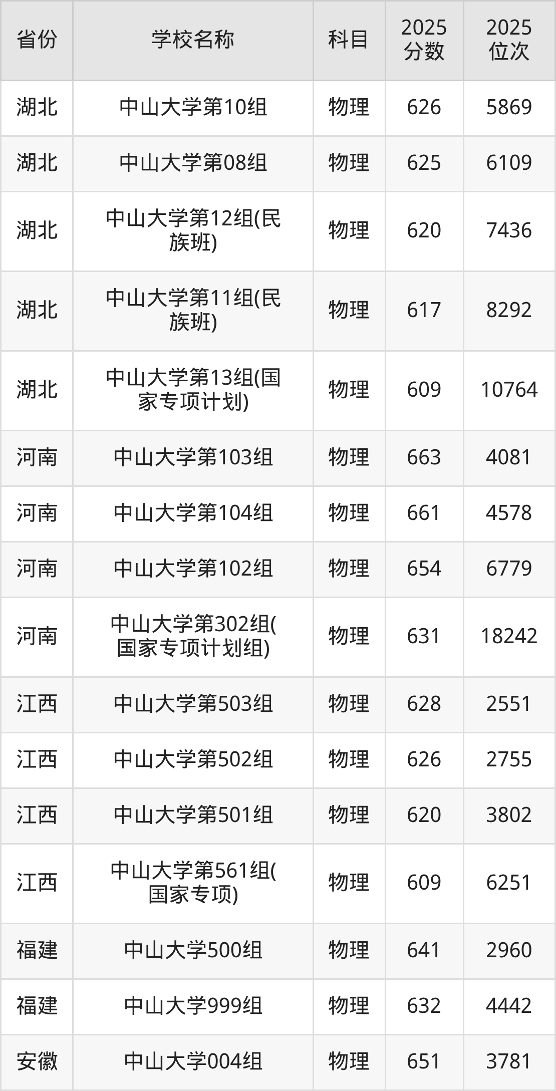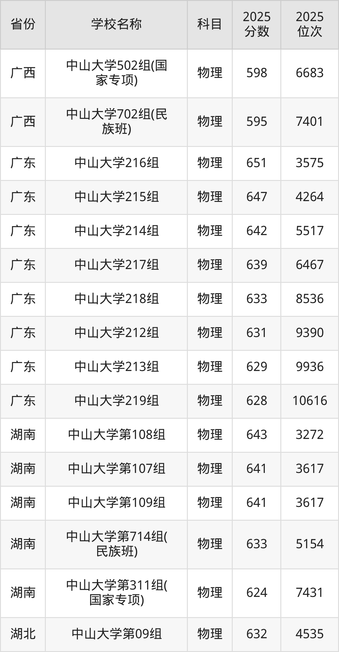 中山大学2025年有10个专业组面向广东省内首选了物理科目的考生招生: