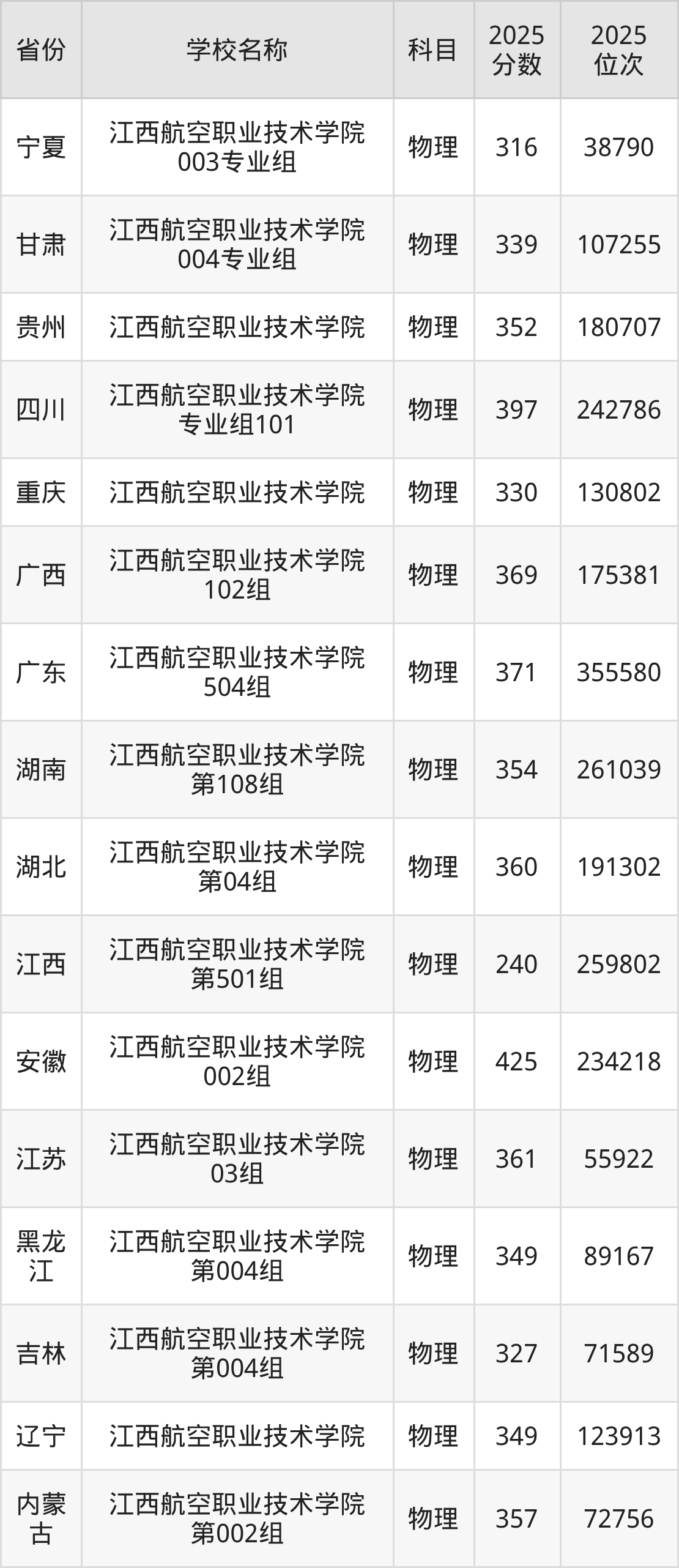 江西航空职业技术学院2025年有5个专业组面向江西省内首选了物理科目的考生招生: