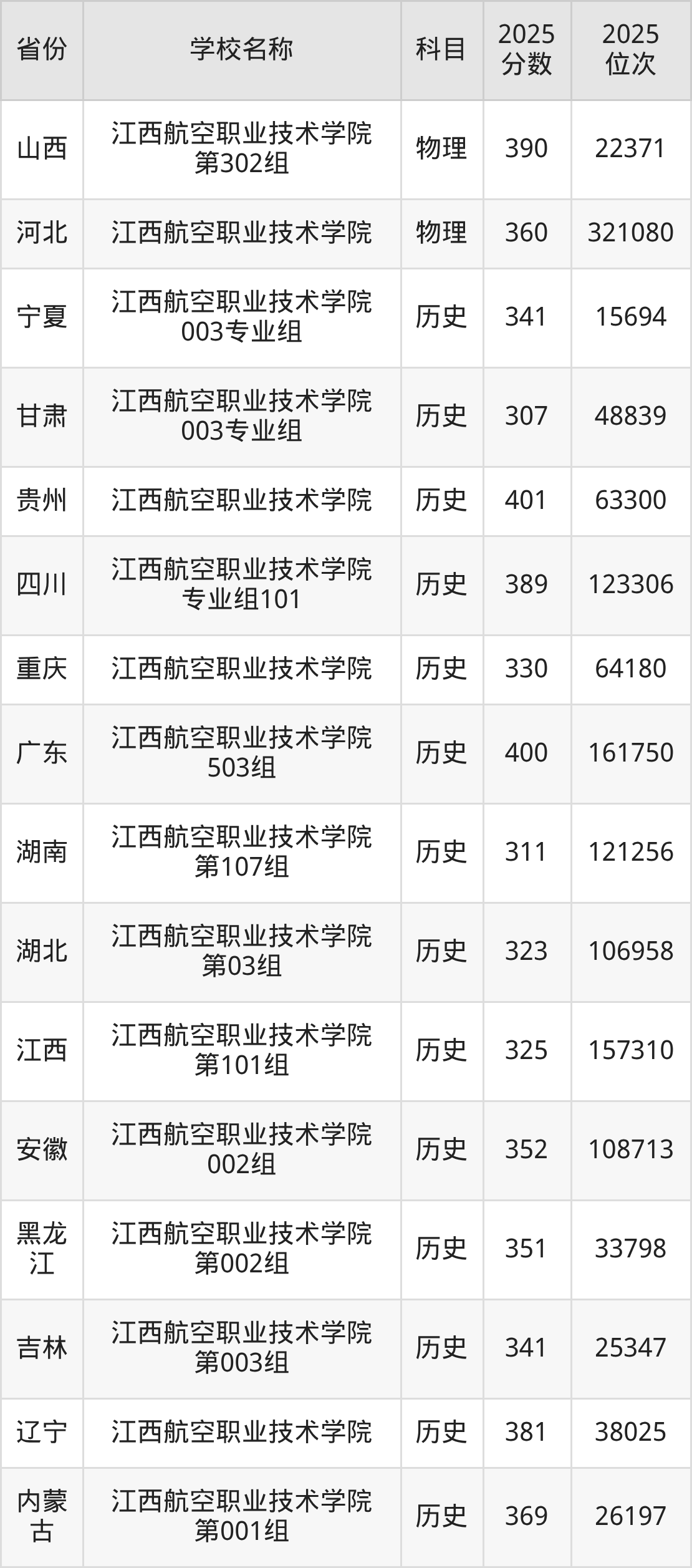 江西航空职业技术学院2025年有5个专业组面向江西省内首选了历史科目的考生招生:
