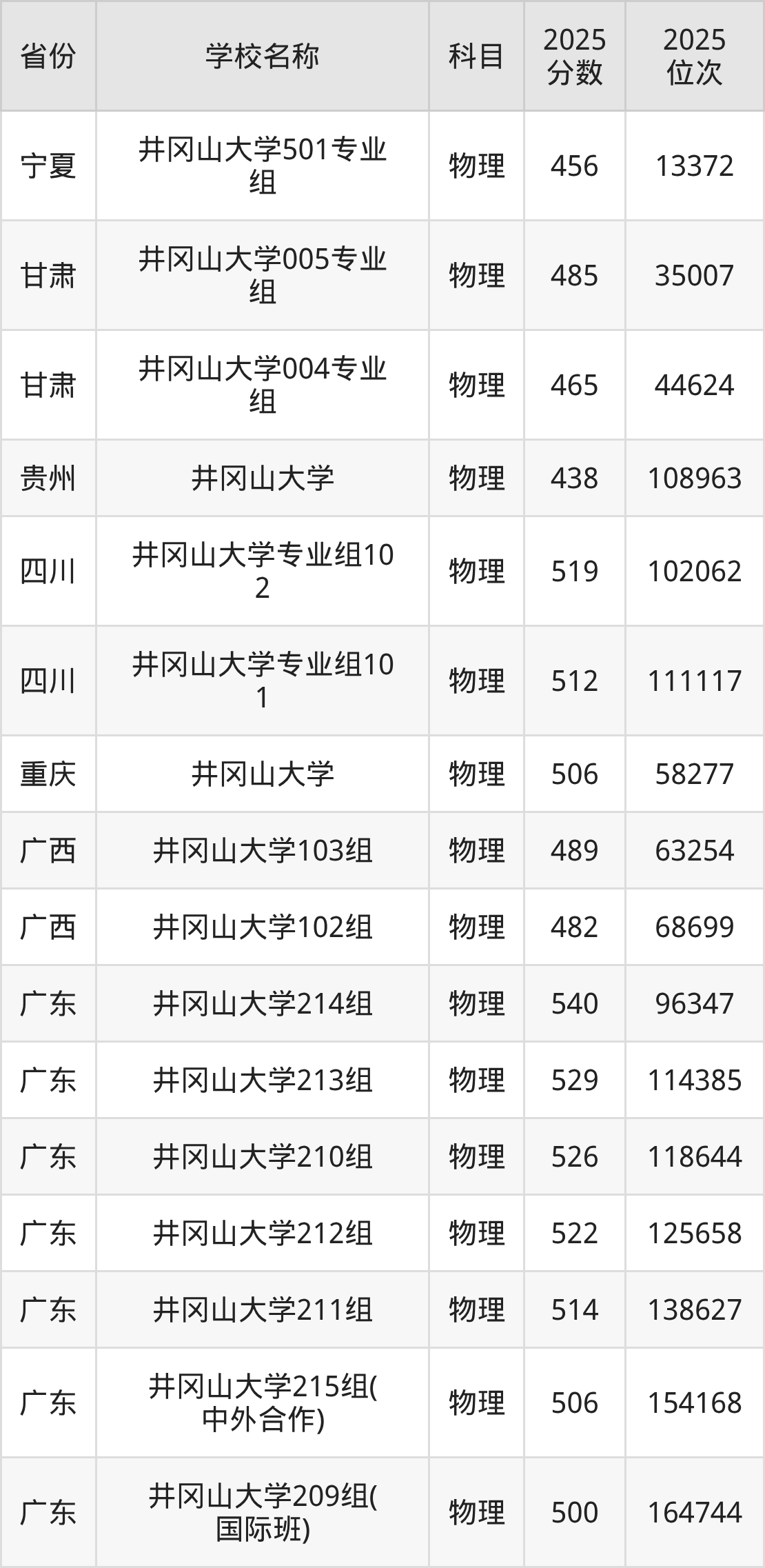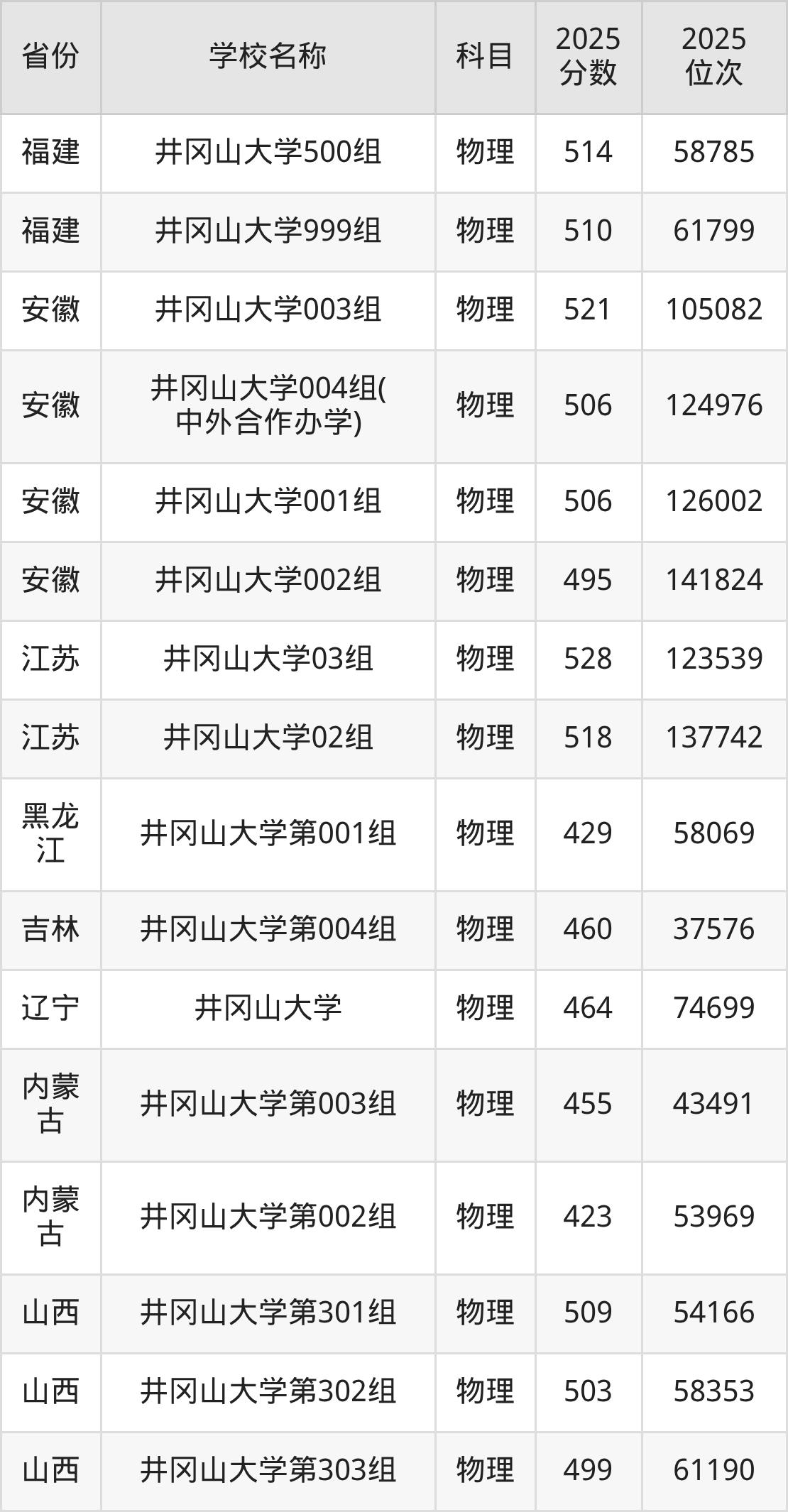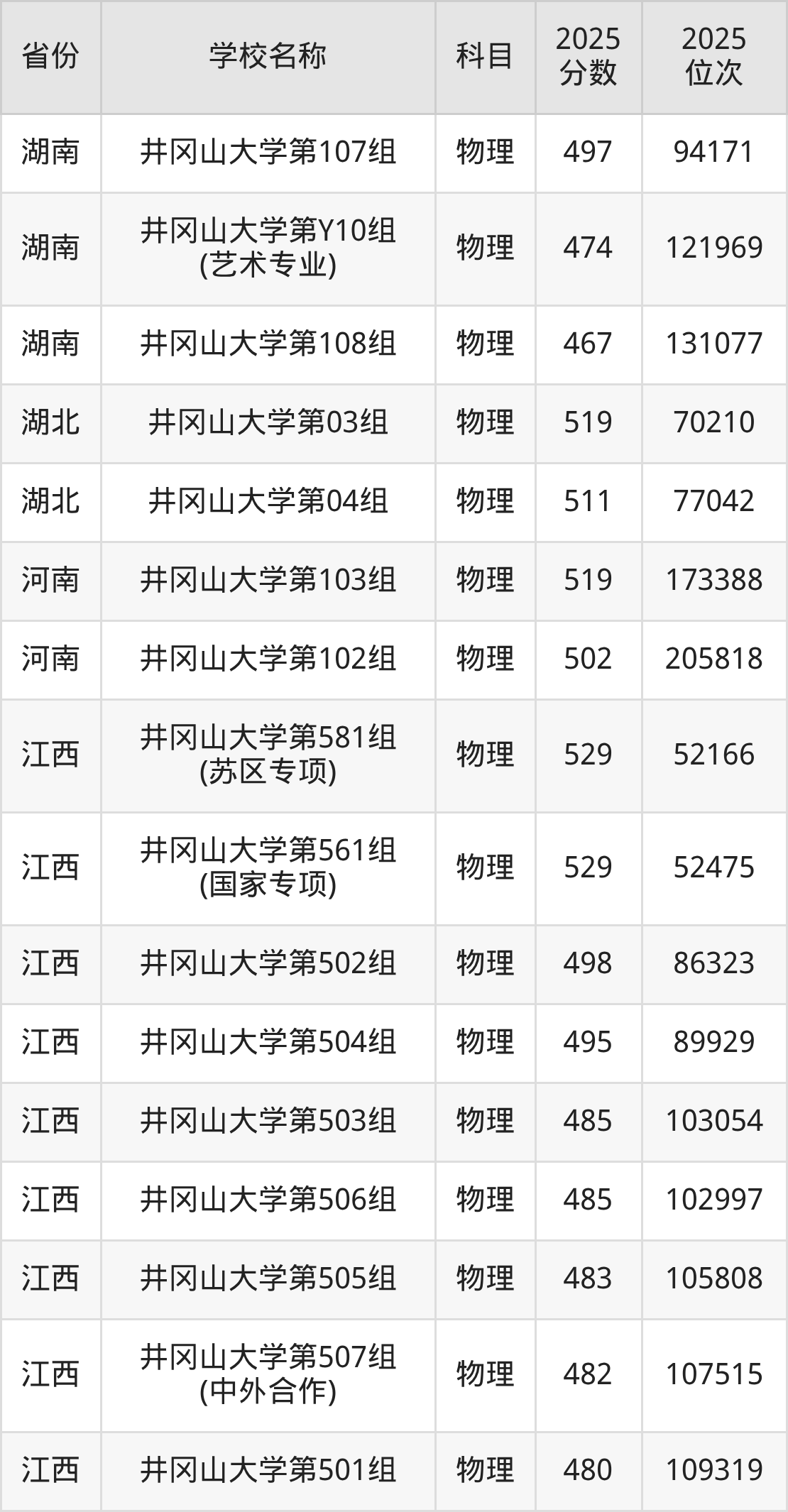 井冈山大学2025年有9个专业组面向江西省内首选了物理科目的考生招生: