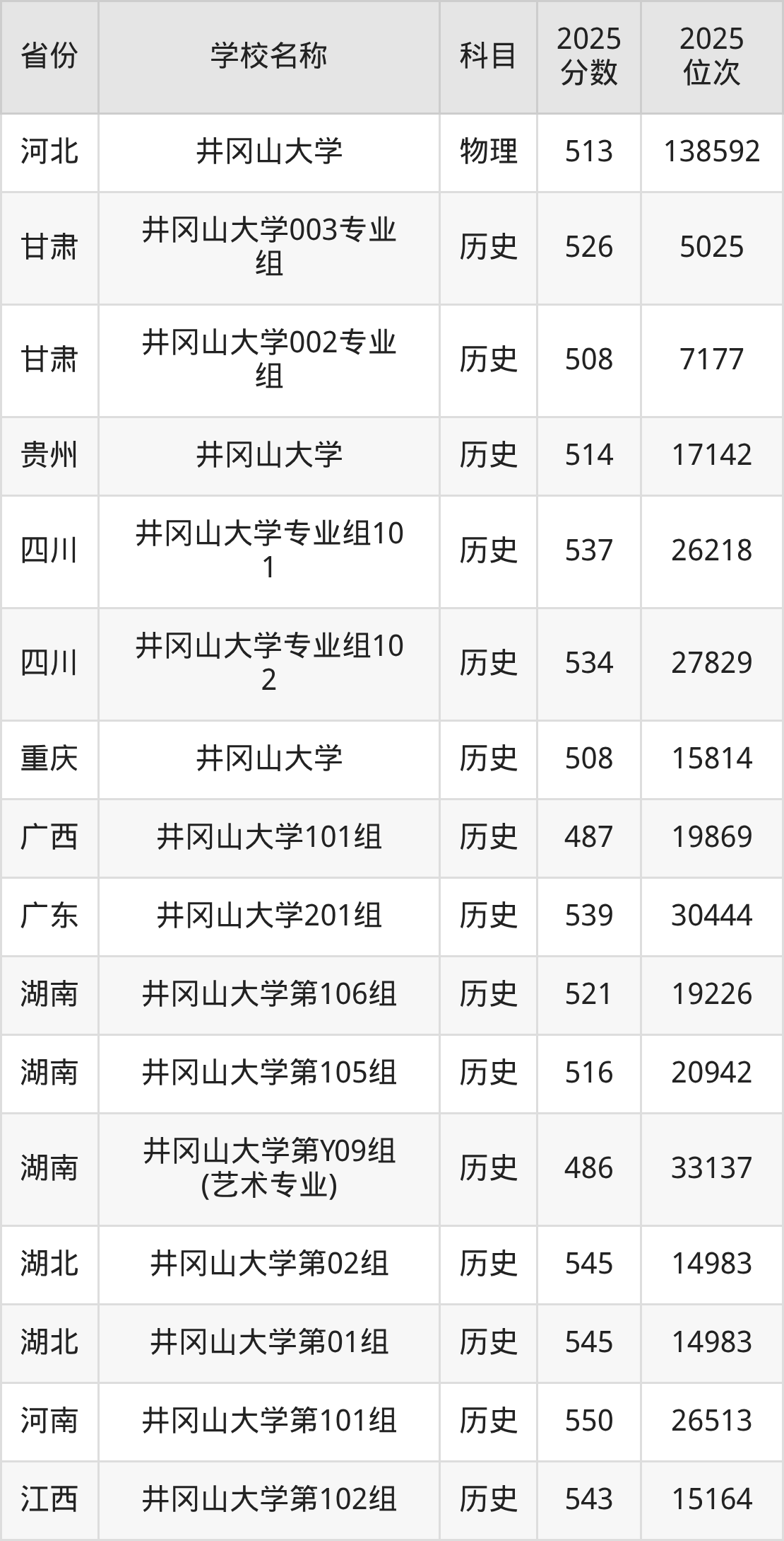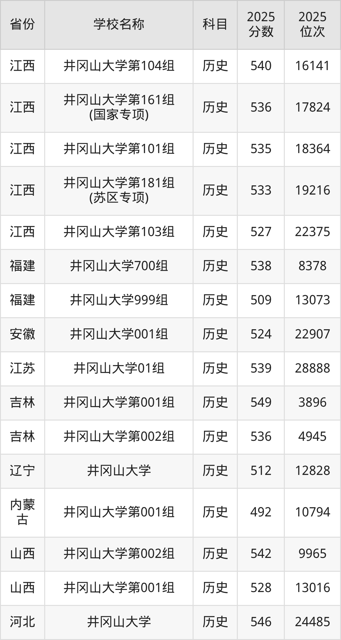 井冈山大学2025年有6个专业组面向江西省内首选了历史科目的考生招生: