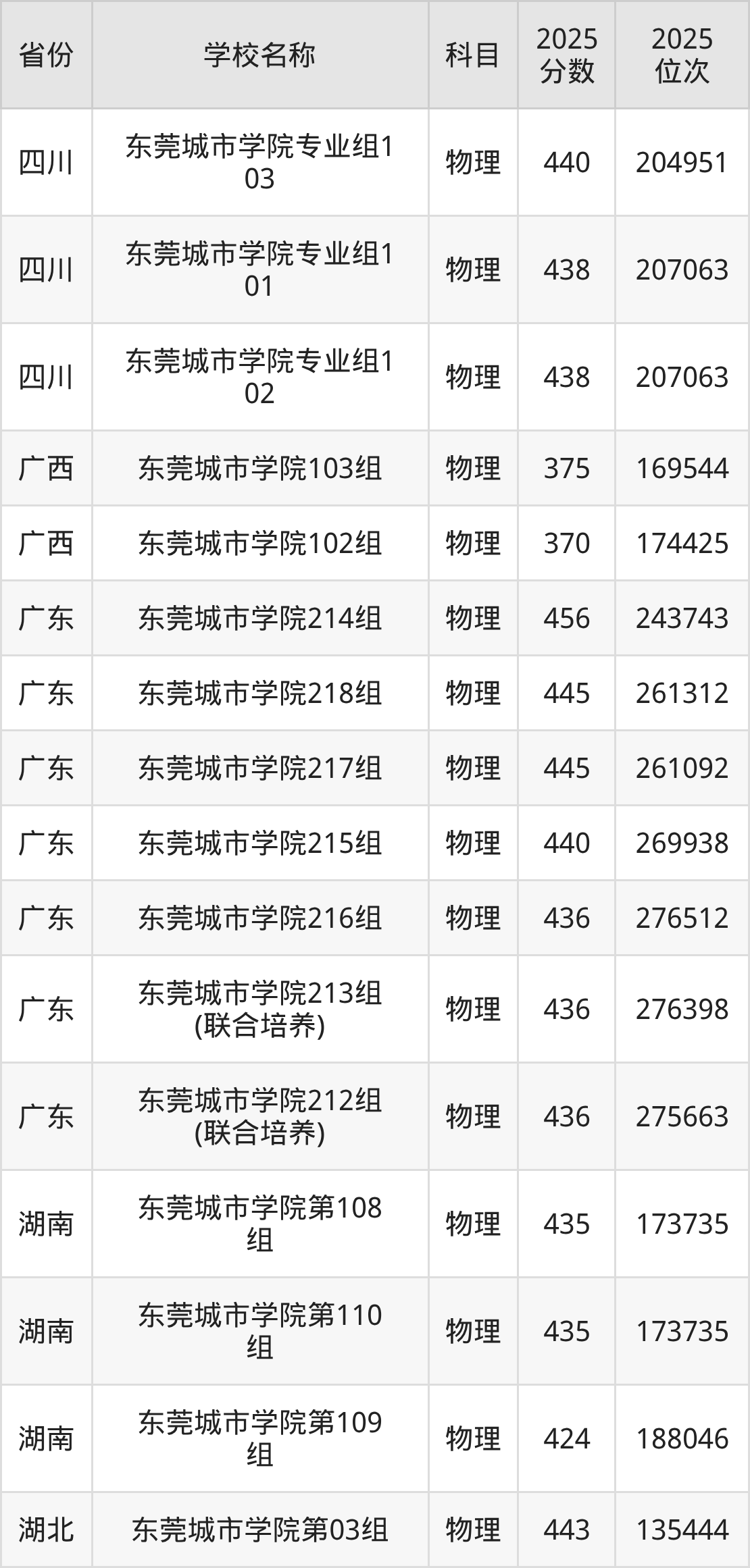 东莞城市学院2025年有7个专业组面向广东省内首选了物理科目的考生招生: