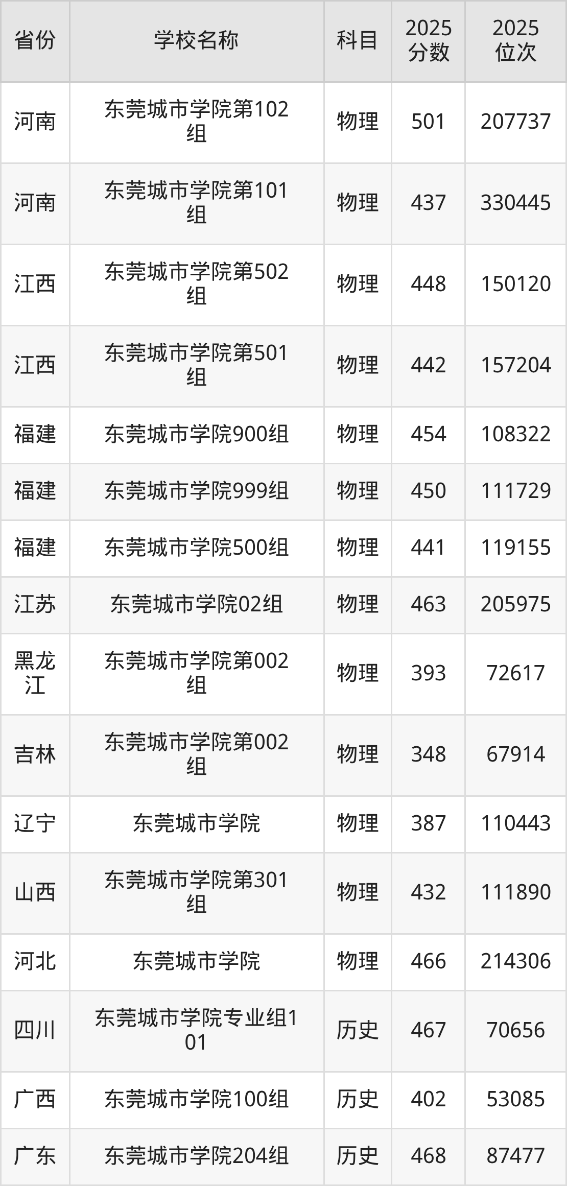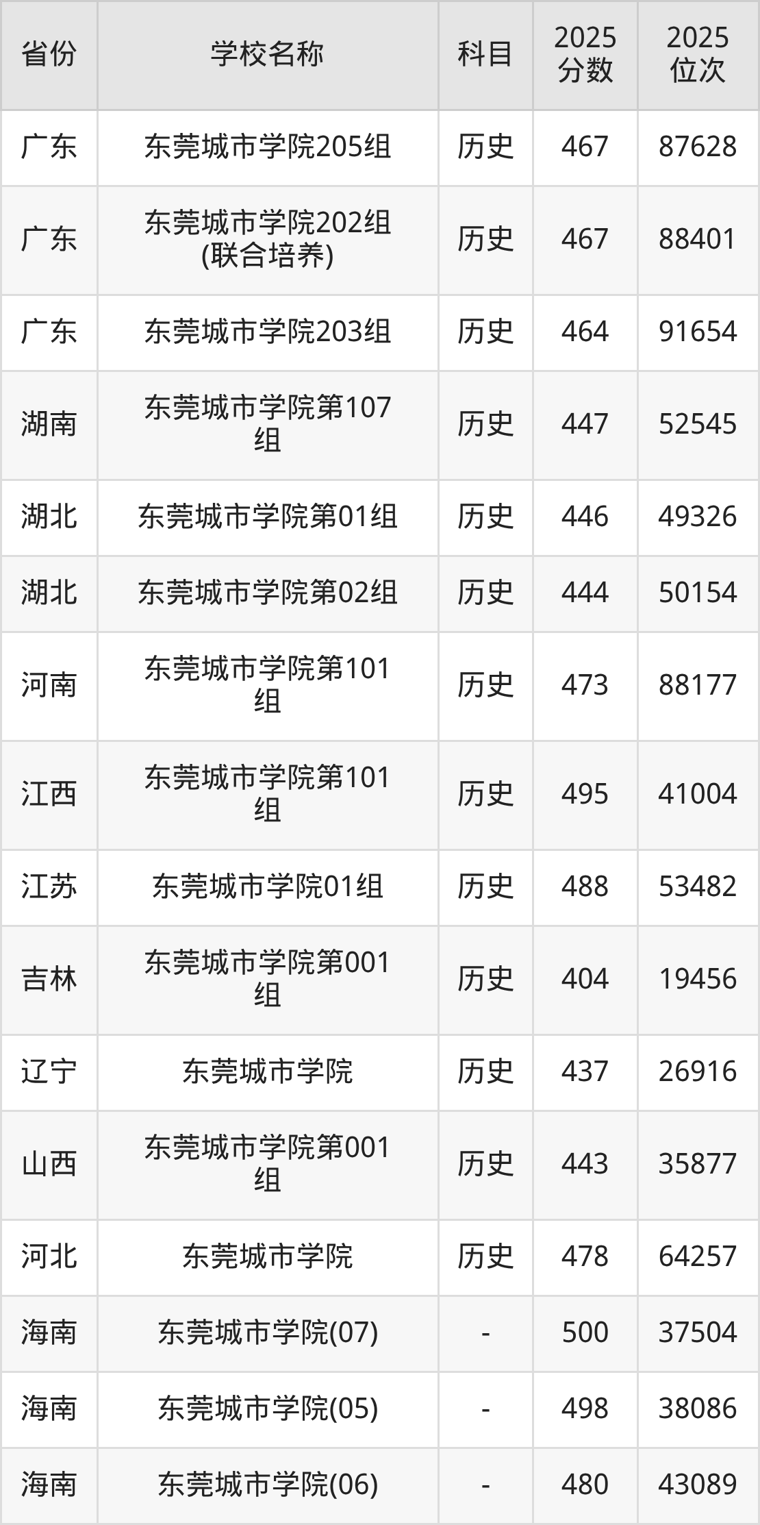 再看广东高考2025年本科批次线,历史类是464分、物理类是436分。通过对比发现:东莞城市学院2025年历史类最低分与本科线相等,物理类最低分与本科线相等。2026届广东高考生,可通过每一次模考划线,来判断自己的成绩是否有机会被东莞城市学院录取。