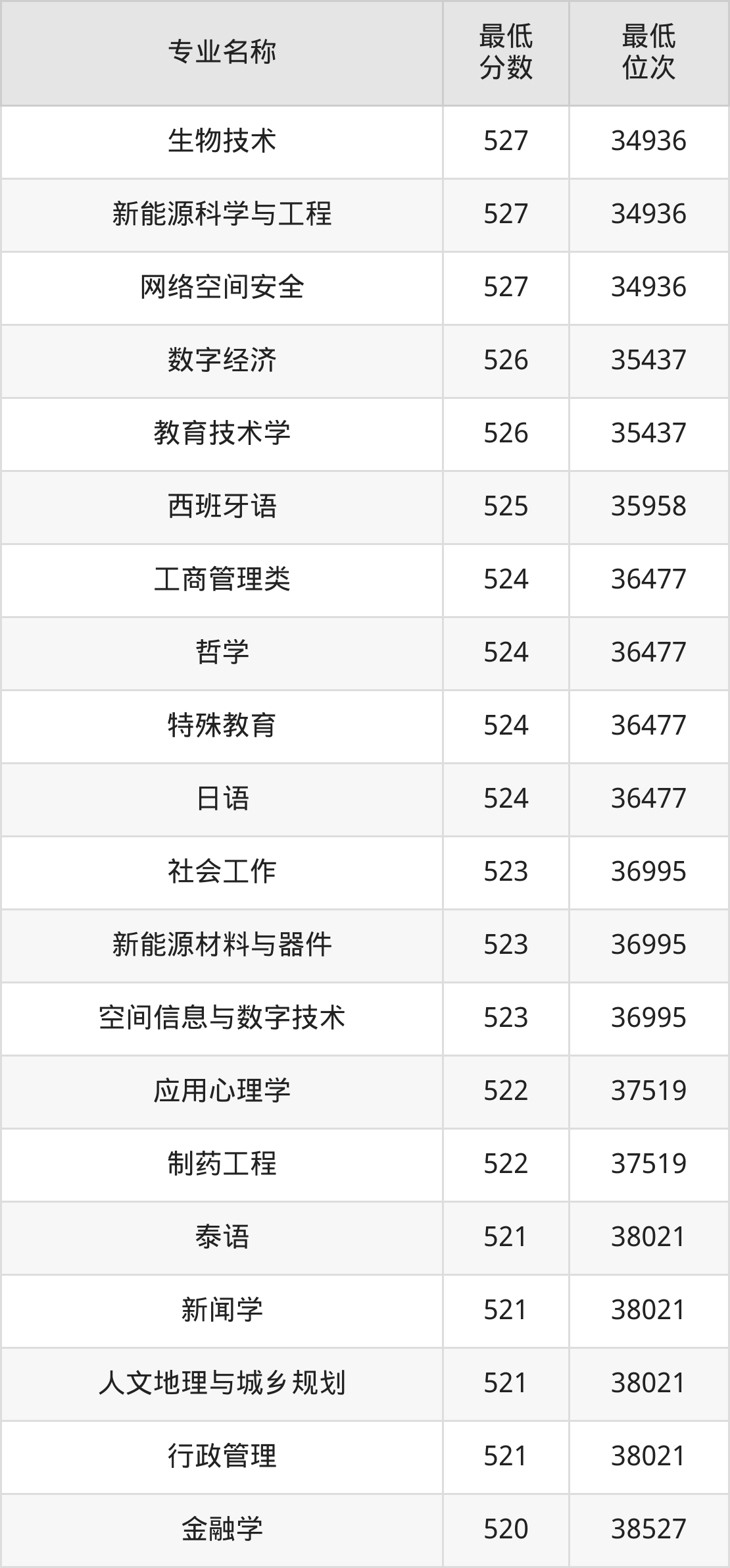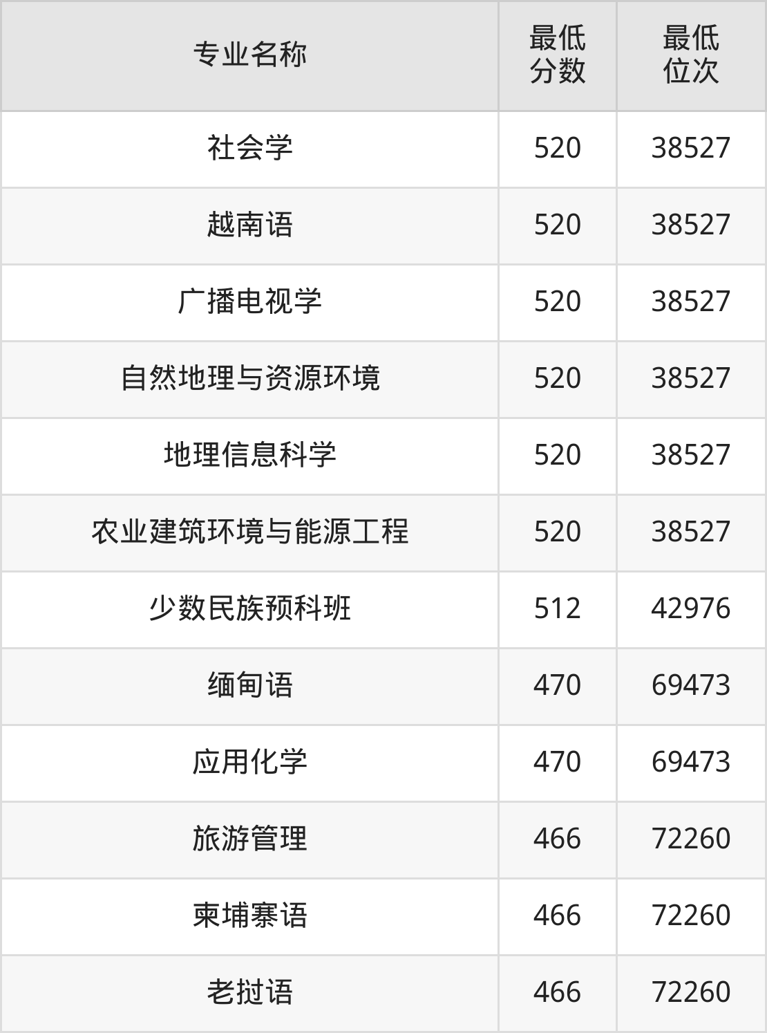 | 云南 | 理科二本 | —— | 466/426/458 |