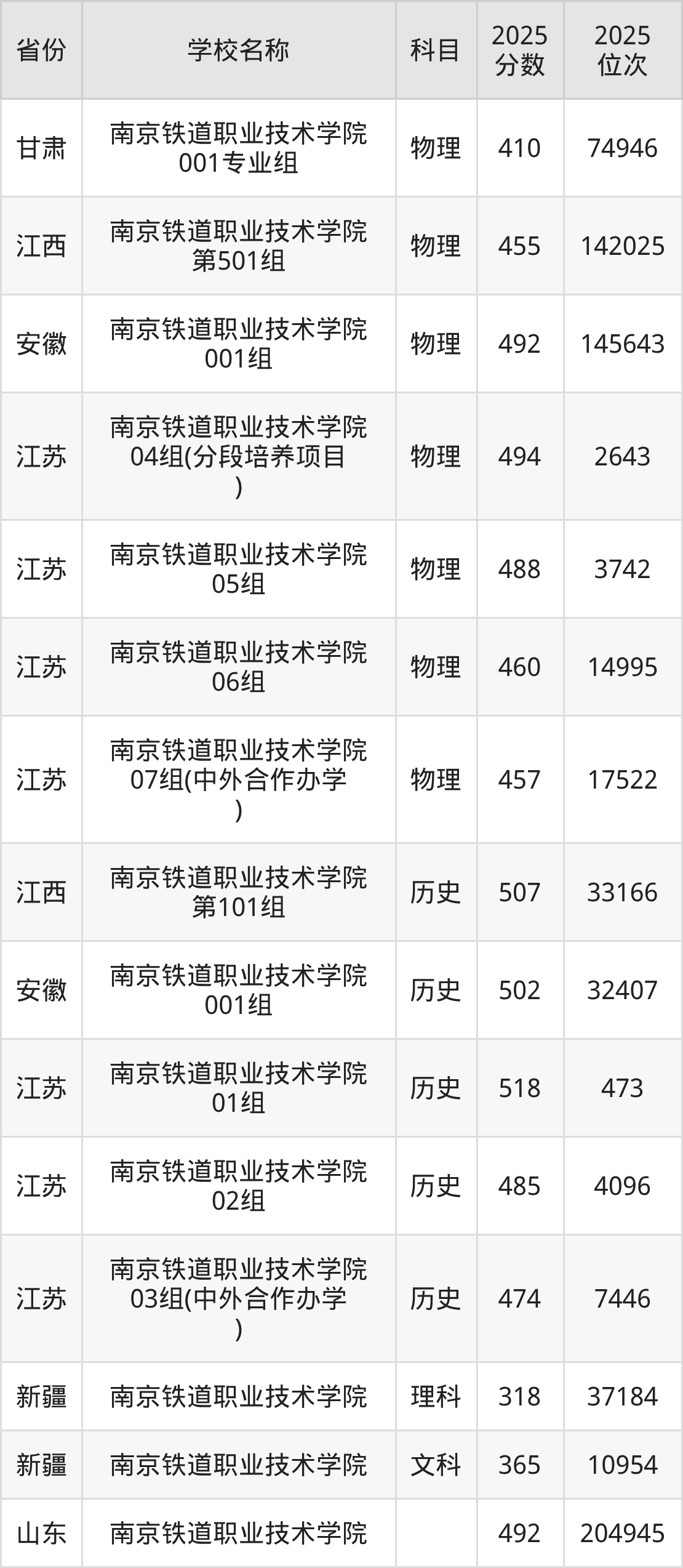 2025年南京铁道职业技术学院在全国各省专科的最低录取分数线在318~518分之间。江苏物理类高考生最低494分能上南京铁道职业技术学院、安徽物理类高考生最低492分能上南京铁道职业技术学院……下文将展示南京铁道职业技术学院在全国6个高考省份中的专科最低投档录取分汇总!