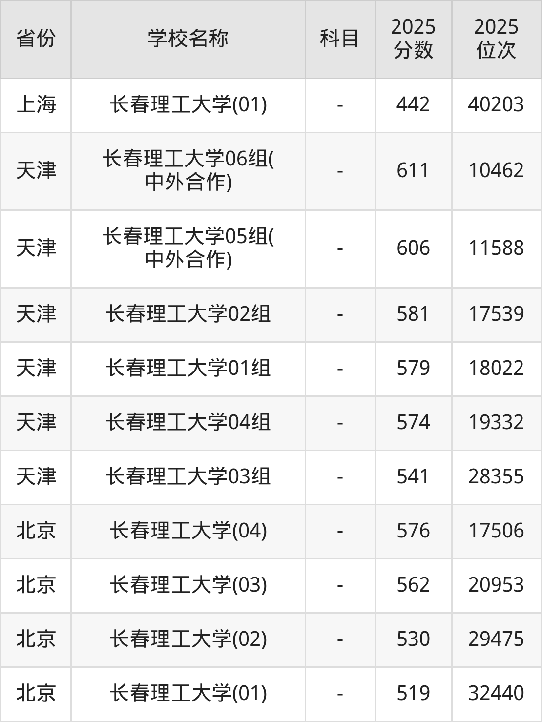 2025年长春理工大学在全国各省本科的最低录取分数线在388~612分之间。河南物理类高考生最低612分能上长春理工大学、天津高考生最低611分能上长春理工大学……下文将展示长春理工大学在全国27个高考省份中的本科最低投档录取分汇总!