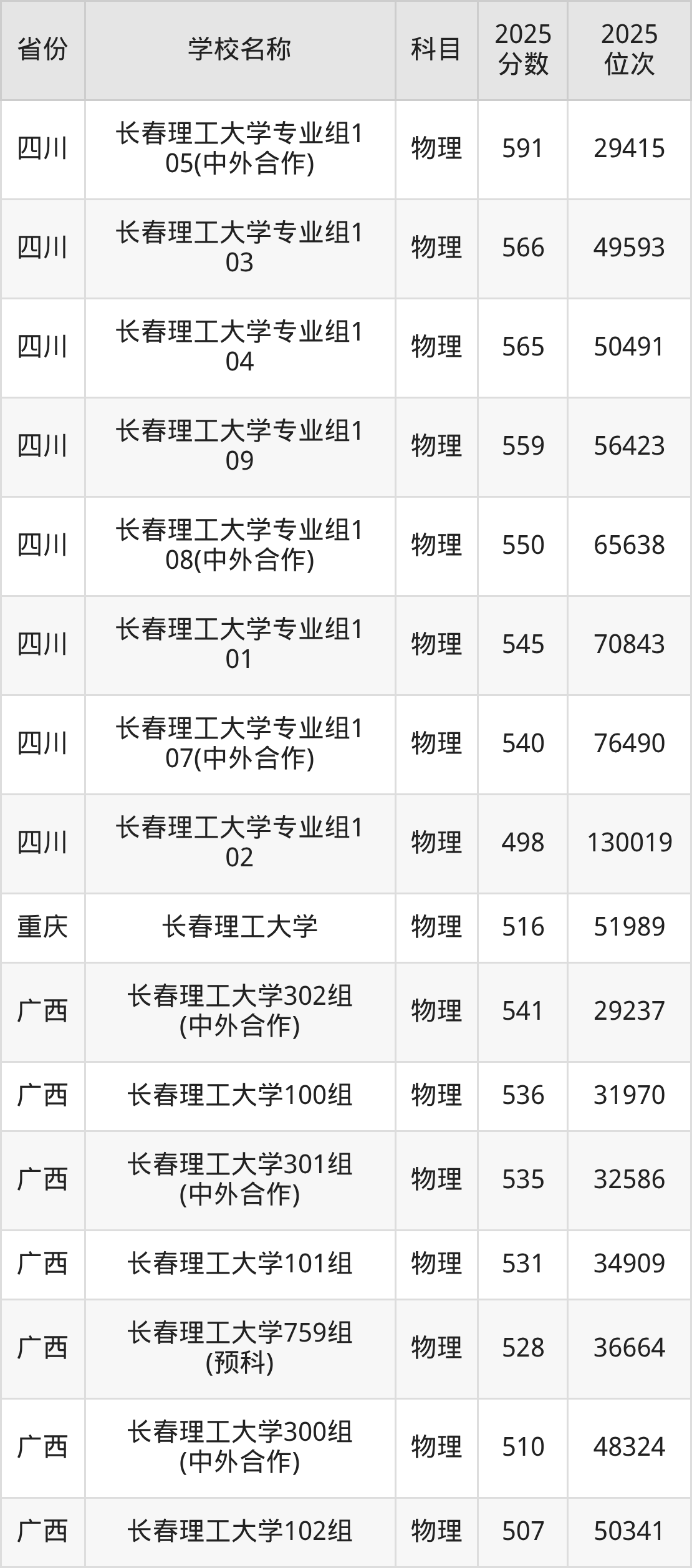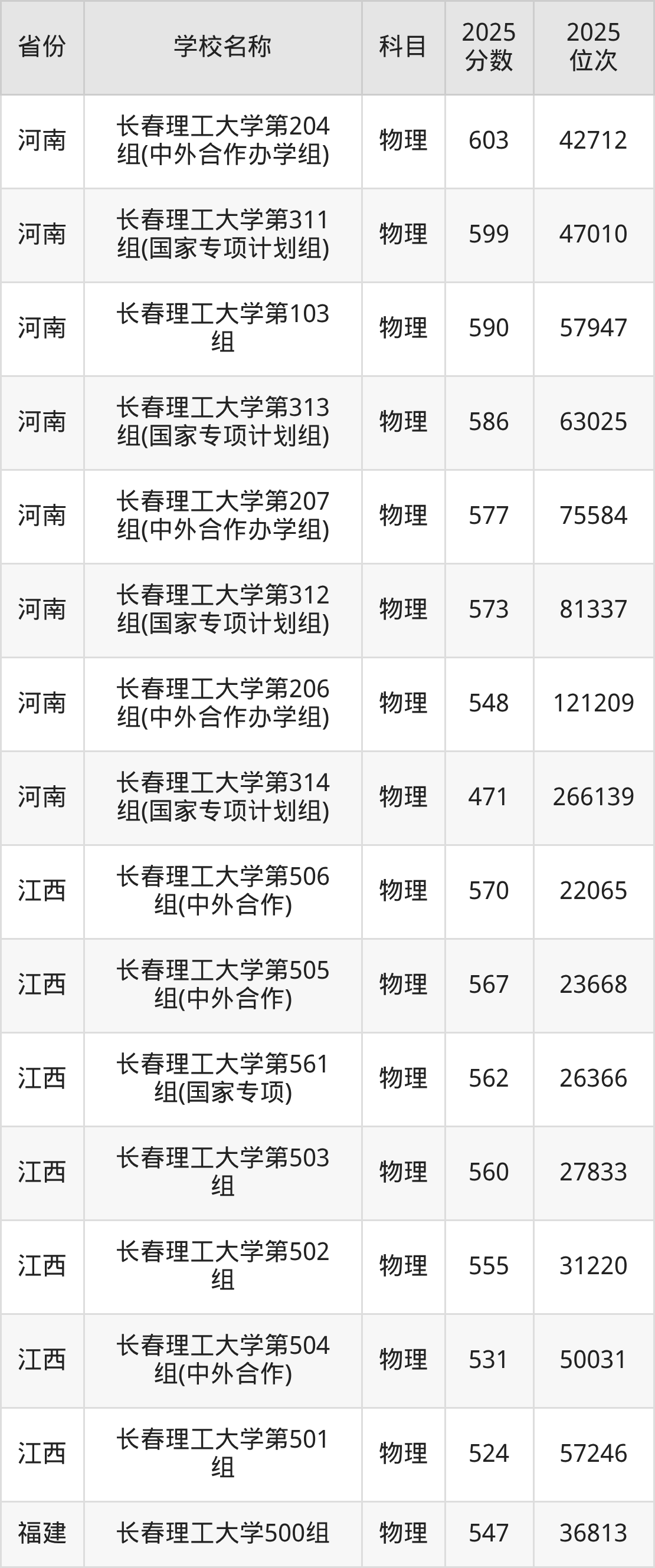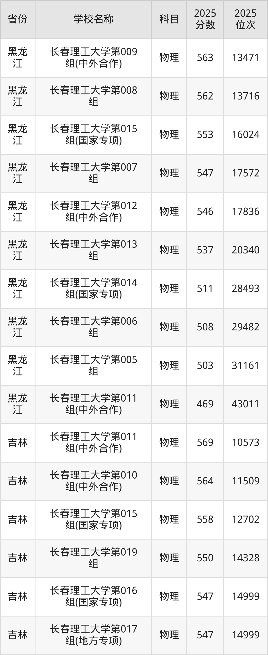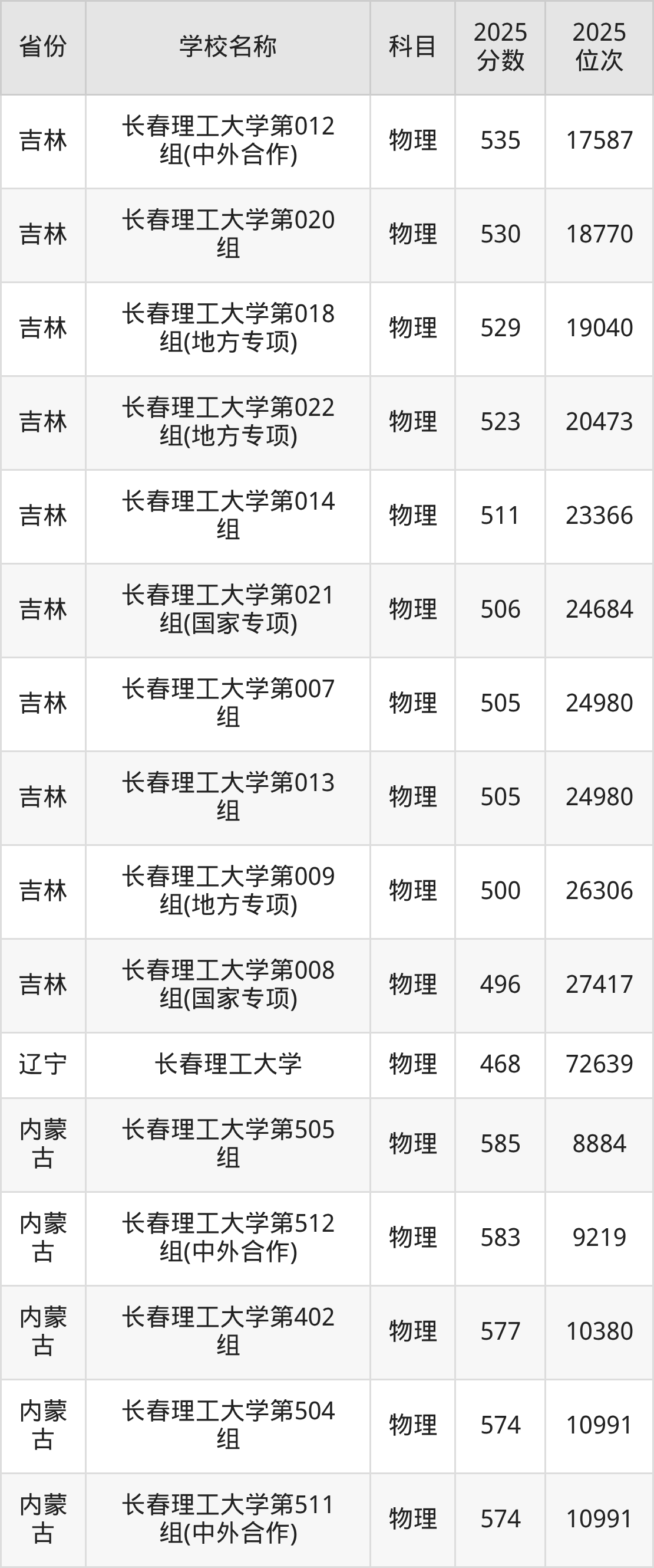 长春理工大学2025年有16个专业组面向吉林省内首选了物理科目的考生招生: