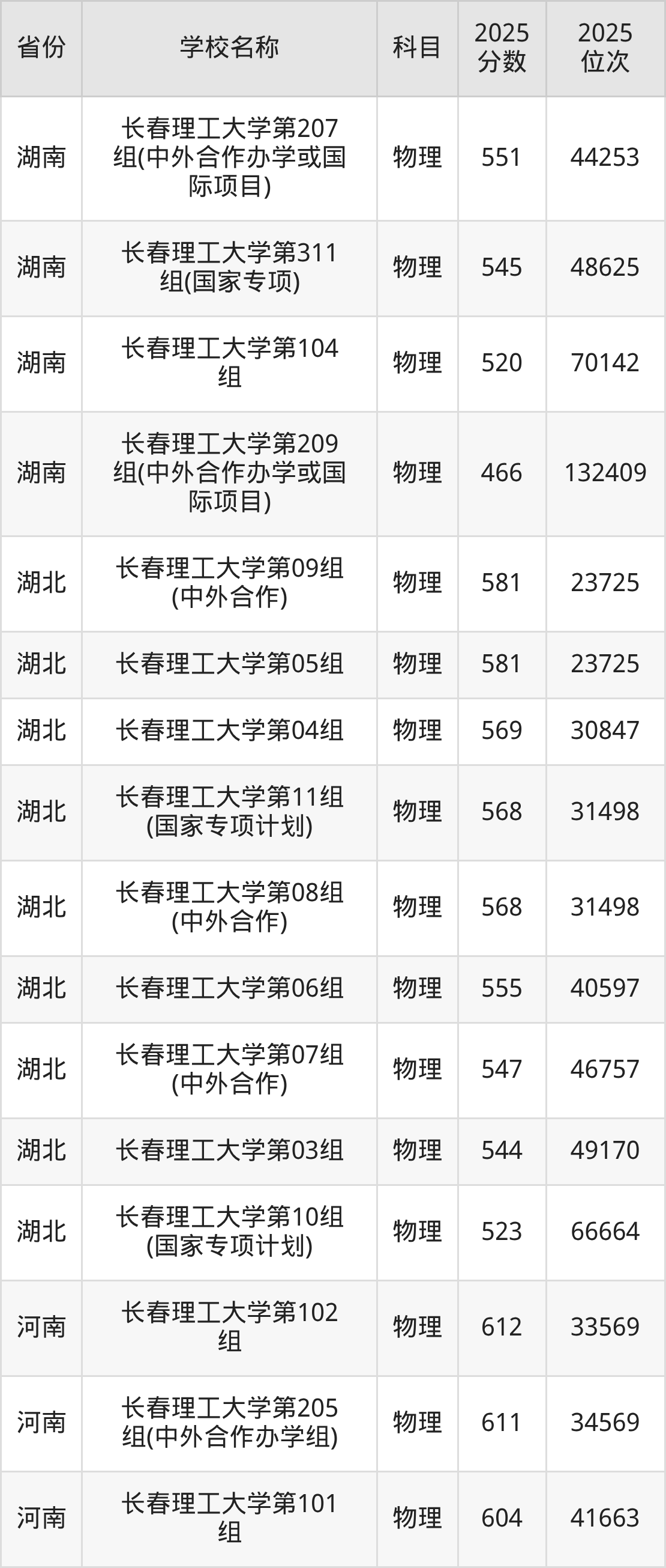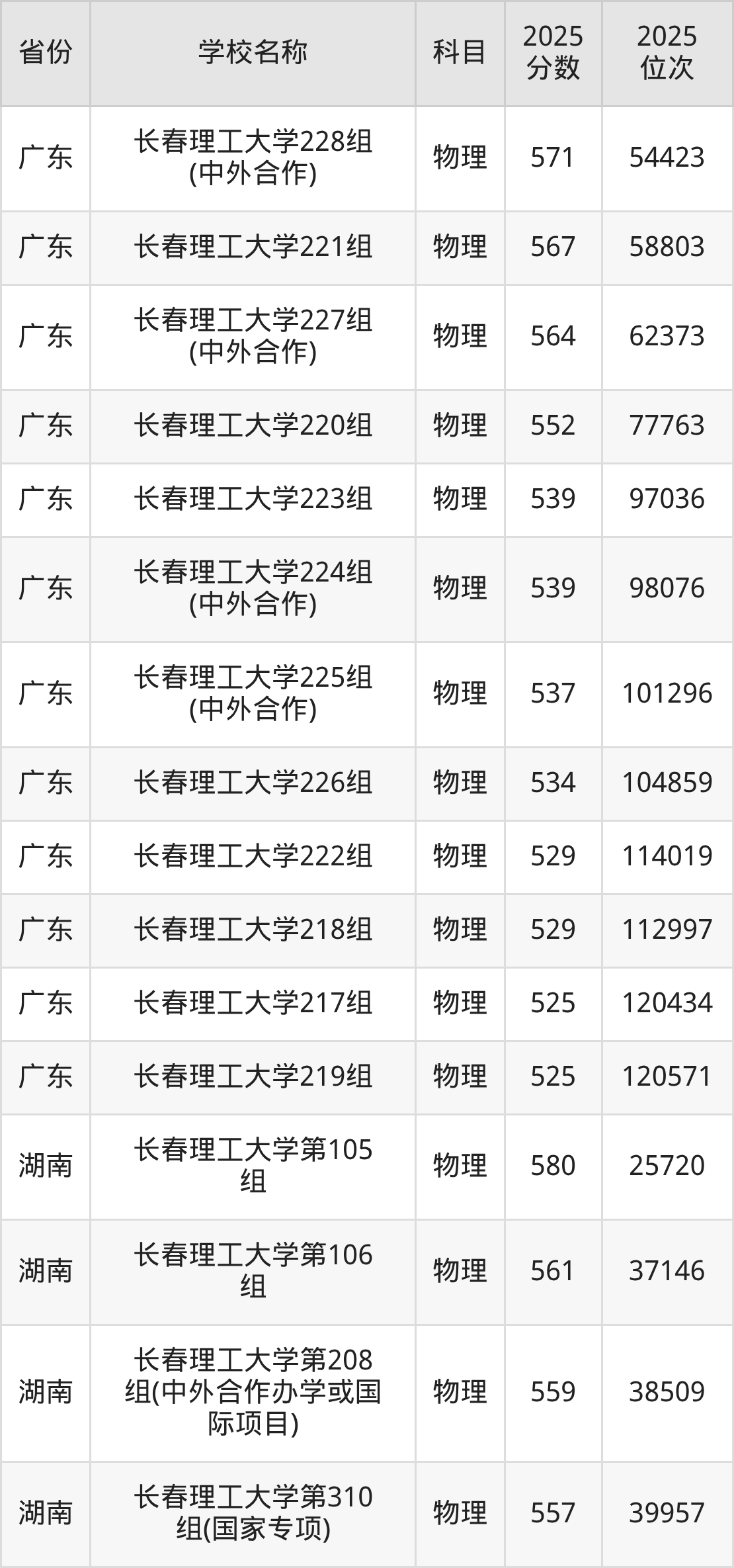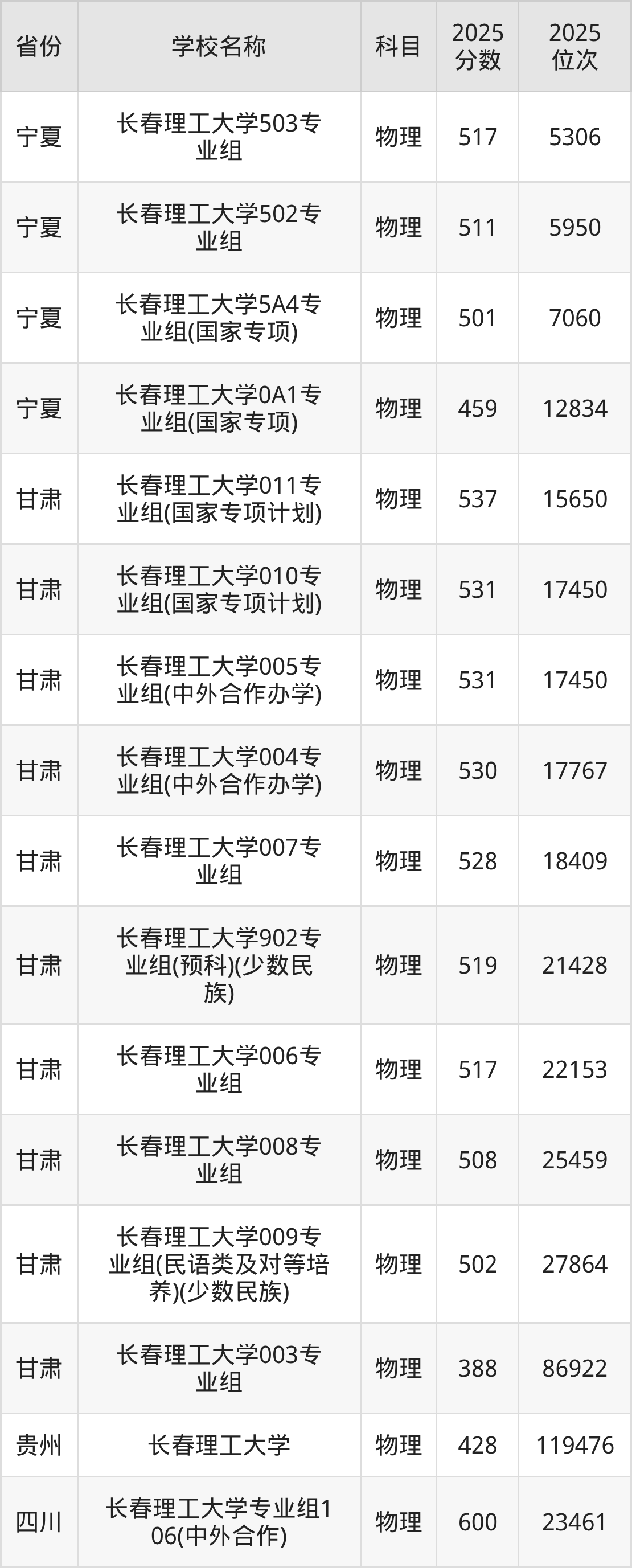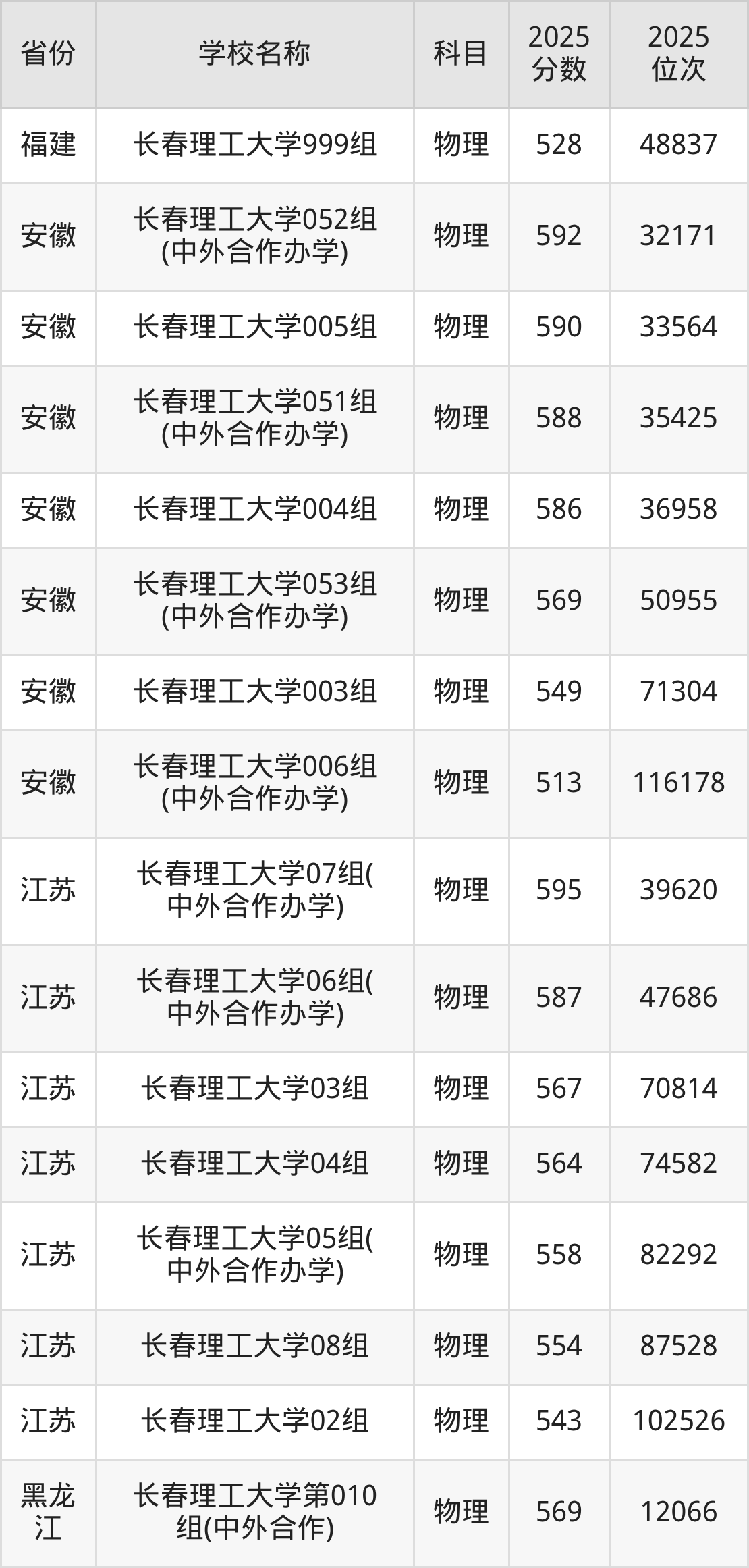 长春理工大学2025年有16个专业组面向吉林省内首选了物理科目的考生招生: