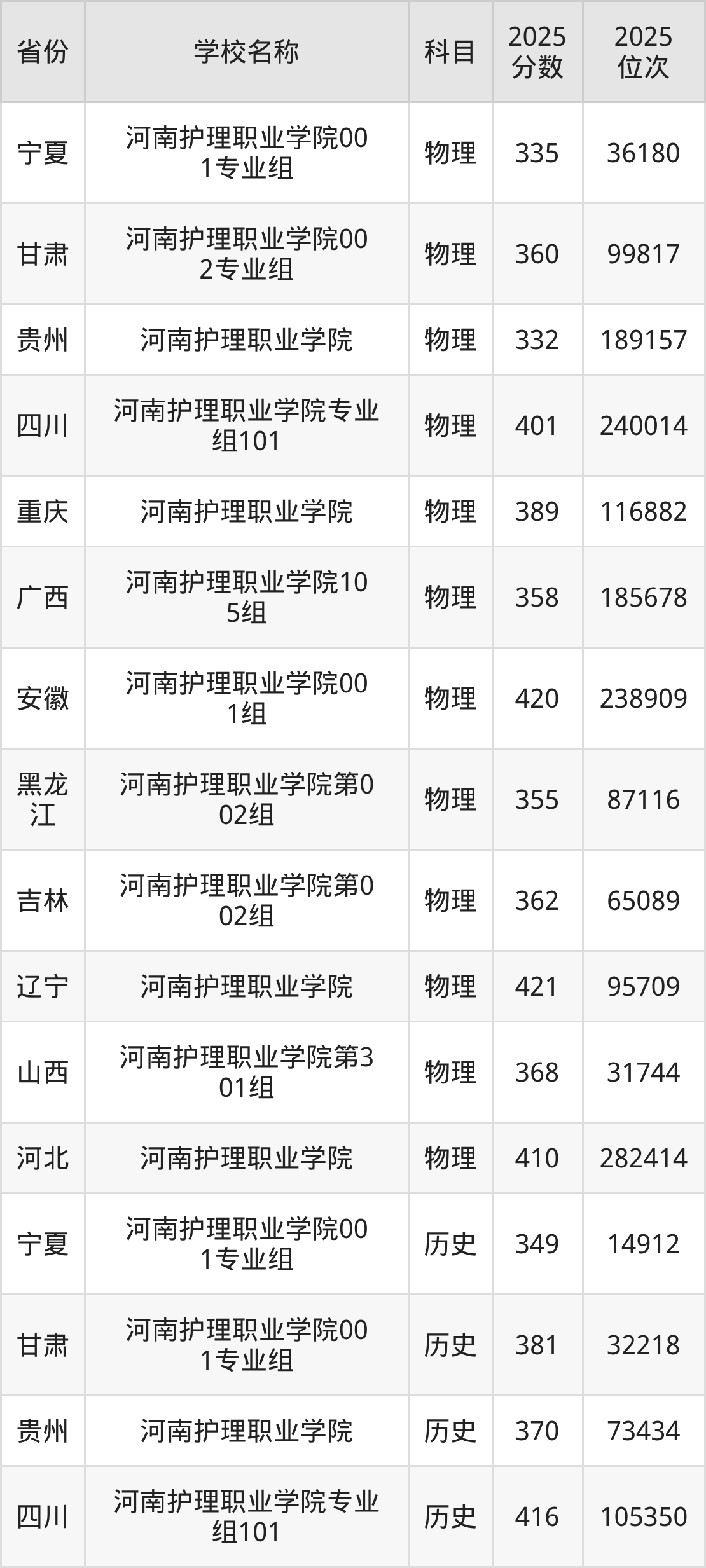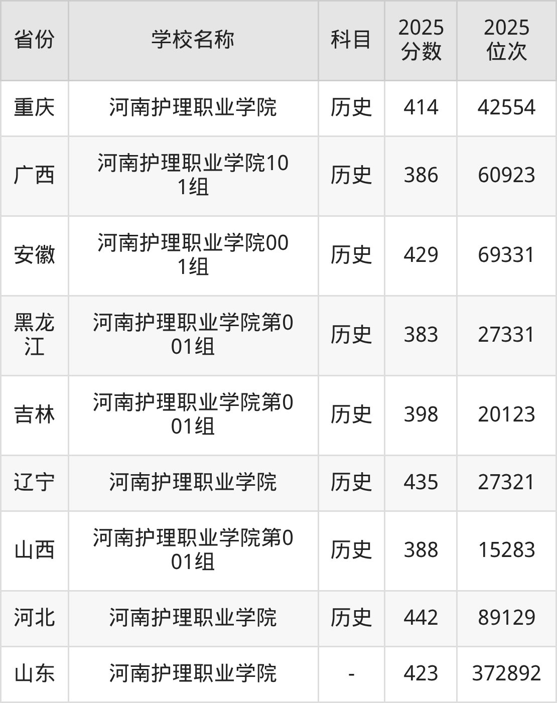 2025年河南护理职业学院在全国各省专科的最低录取分数线在332~442分之间。山东高考生最低423分能上河南护理职业学院、辽宁物理类高考生最低421分能上河南护理职业学院……下文将展示河南护理职业学院在全国13个高考省份中的专科最低投档录取分汇总!