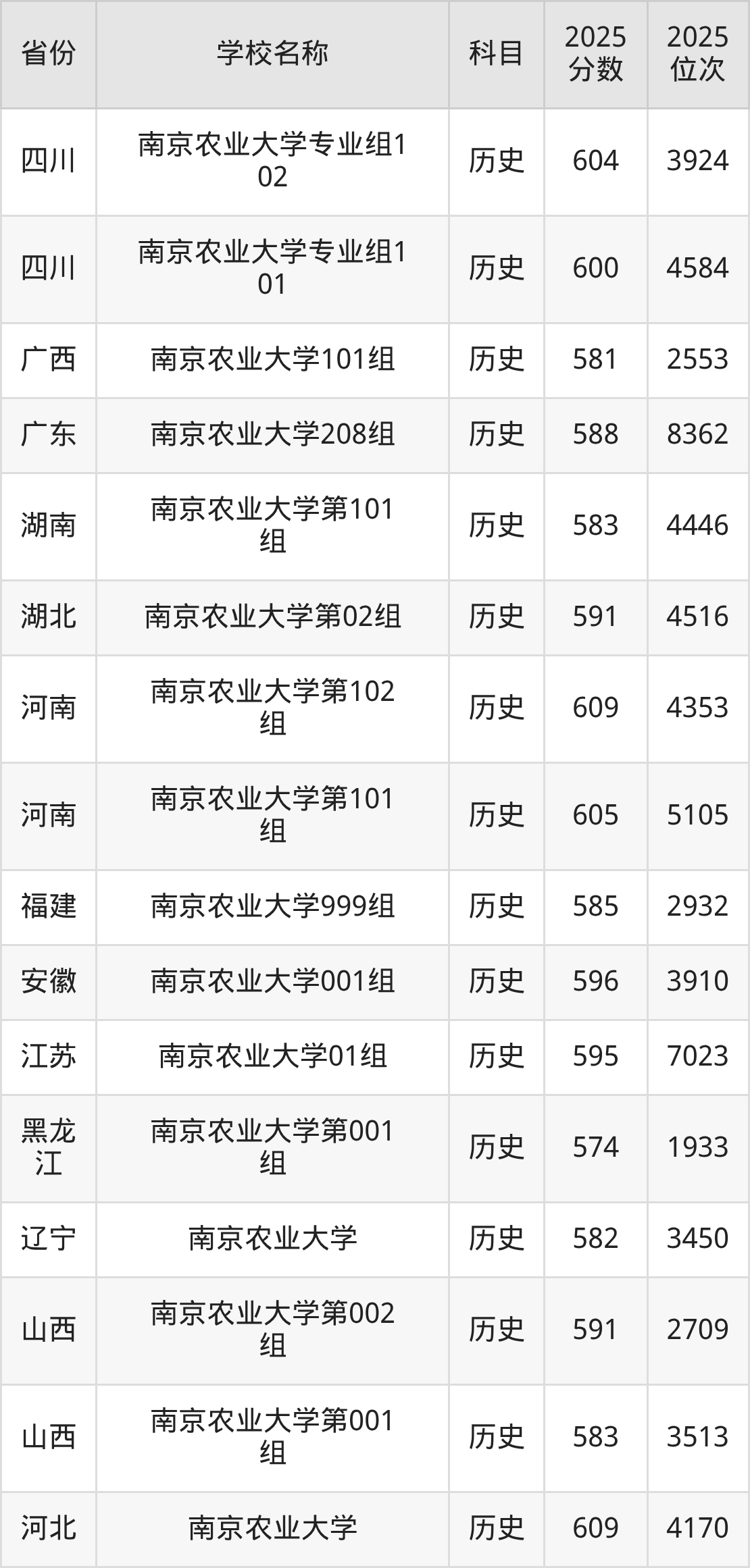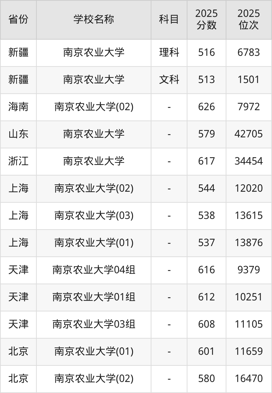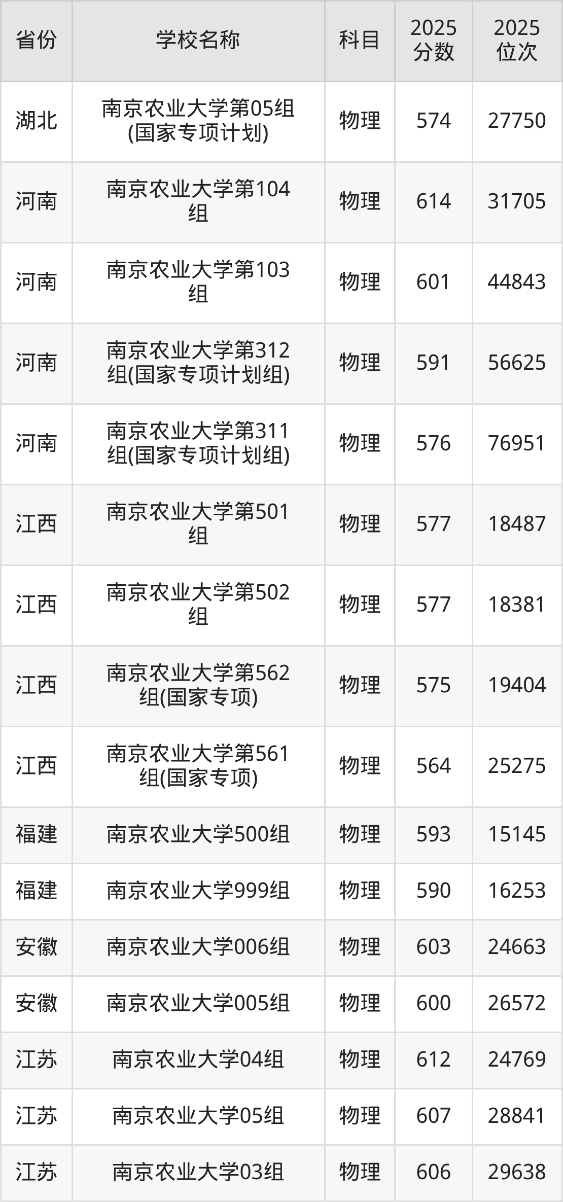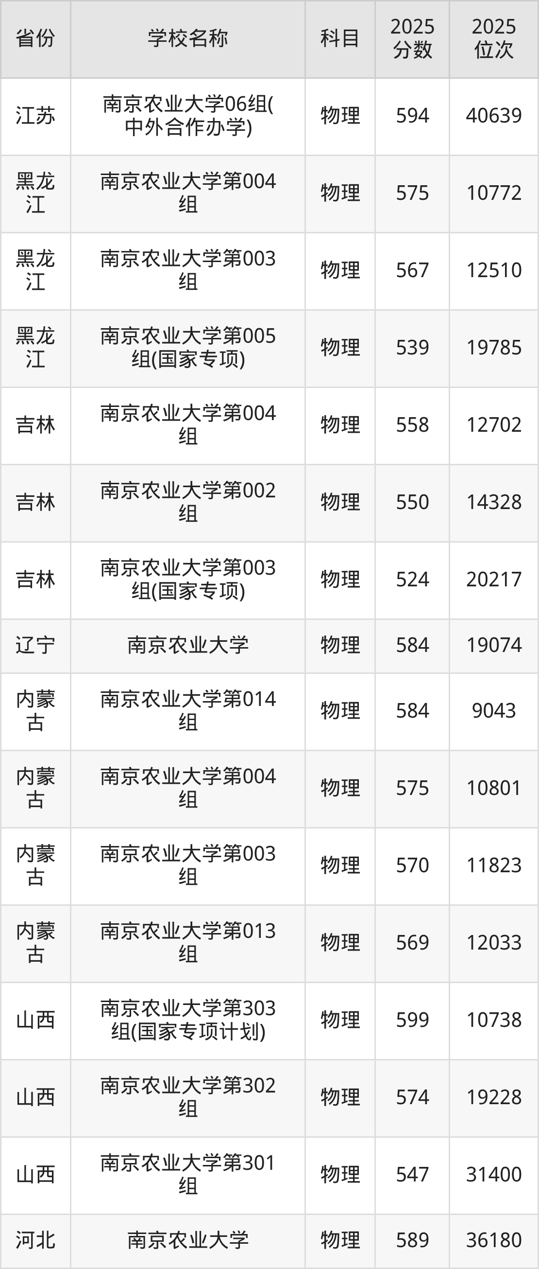 二、南京农业大学各专业录取分数线