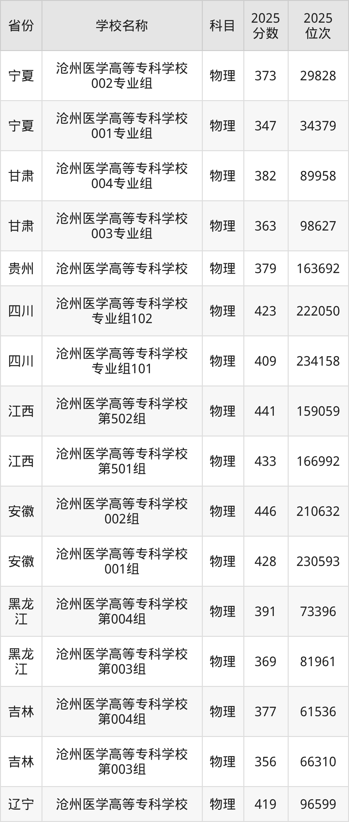 2025年沧州医学高等专科学校在全国各省专科的最低录取分数线在347~502分之间。山东高考生最低451分能上沧州医学高等专科学校、安徽物理类高考生最低446分能上沧州医学高等专科学校……下文将展示沧州医学高等专科学校在全国13个高考省份中的专科最低投档录取分汇总!