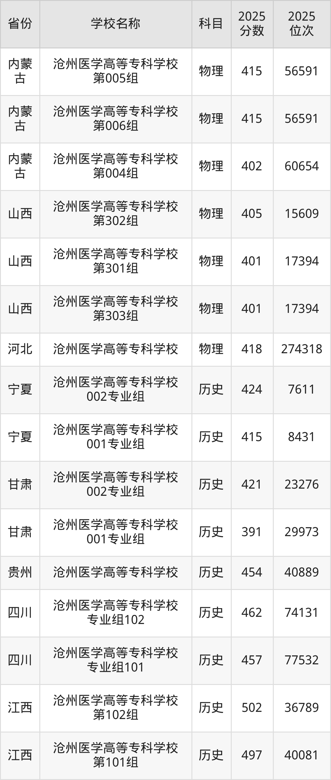 沧州医学高等专科学校2025年面向河北省内首选了物理科目的考生招生: