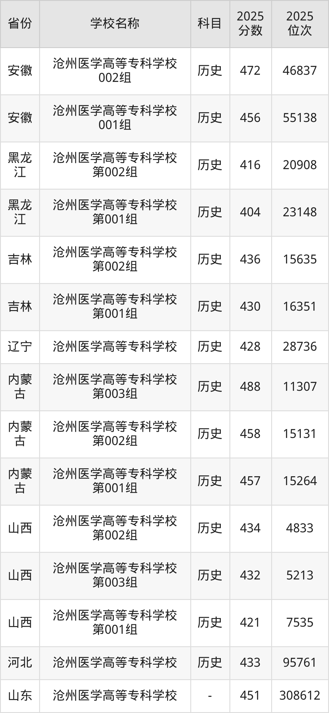 沧州医学高等专科学校2025年面向河北省内首选了历史科目的考生招生: