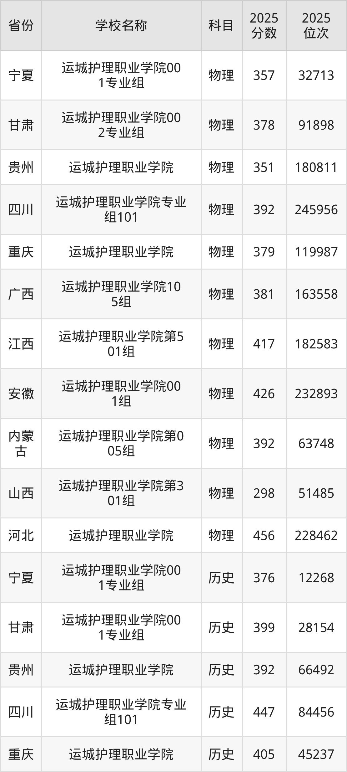 运城护理职业学院2025年有1个专业组面向山西省内首选了物理科目的考生招生: