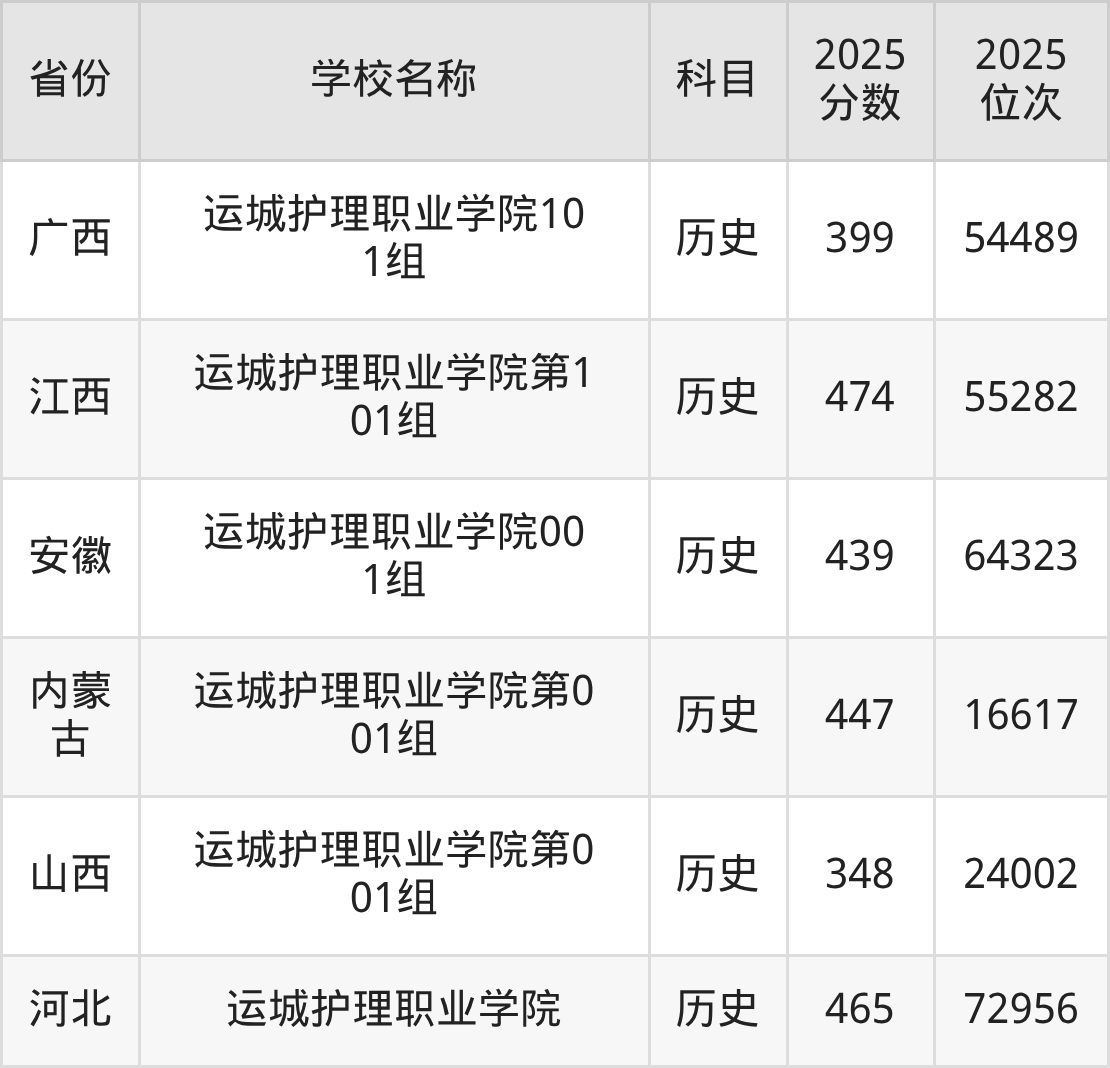 运城护理职业学院2025年有1个专业组面向山西省内首选了历史科目的考生招生: