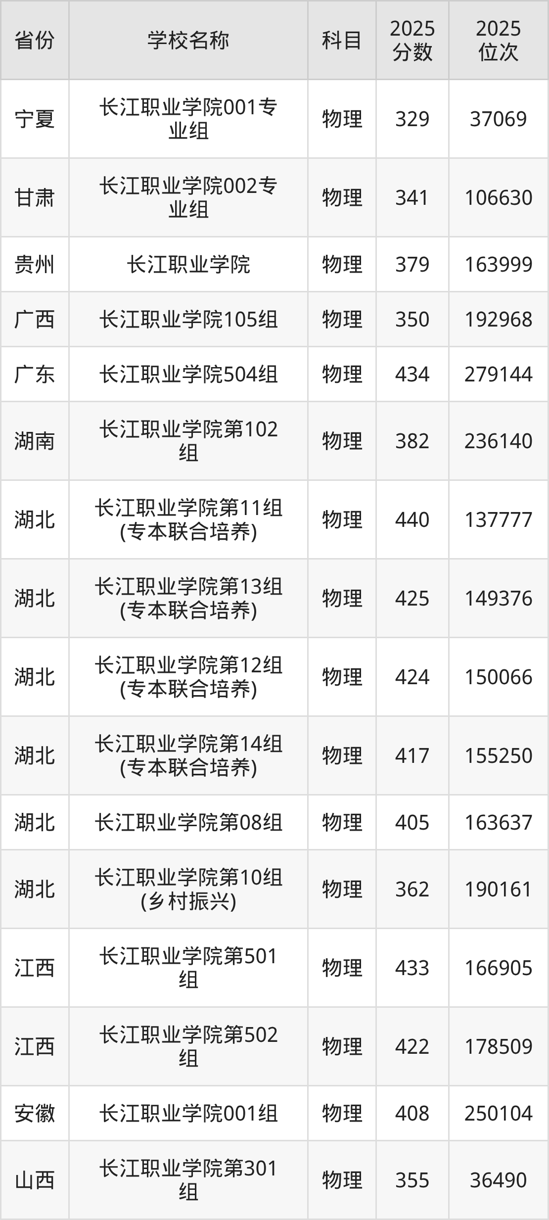 长江职业学院2025年有6个专业组面向湖北省内首选了物理科目的考生招生: