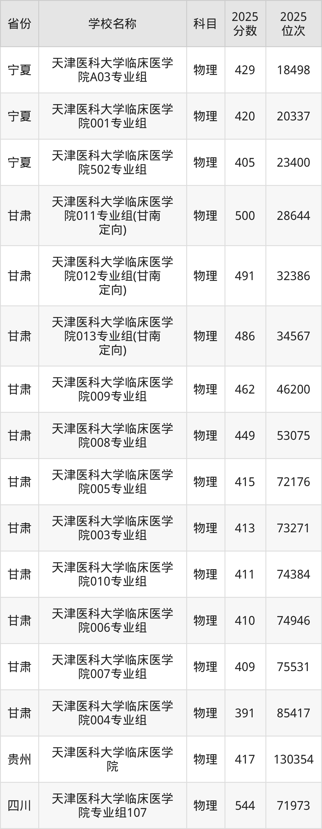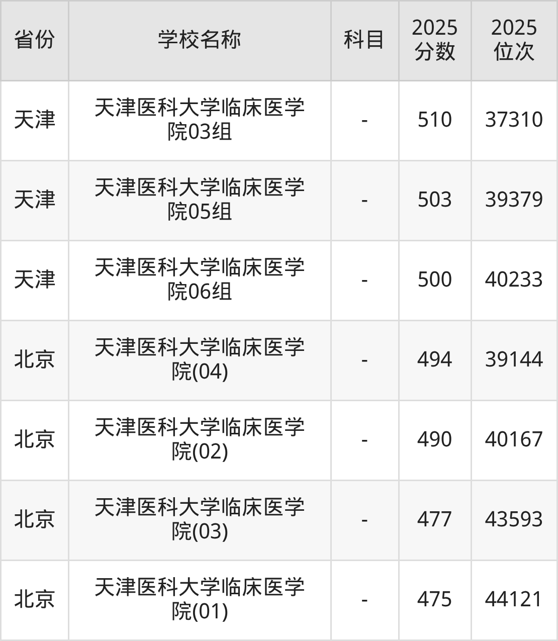 天津医科大学临床医学院2025年有7个专业组面向天津市内的考生招生: