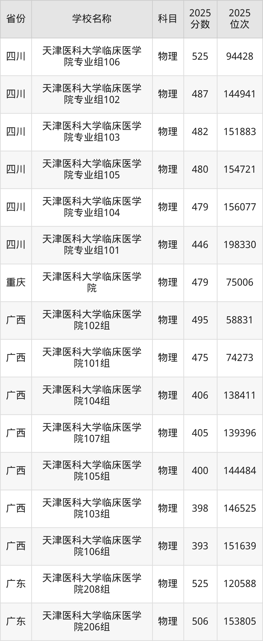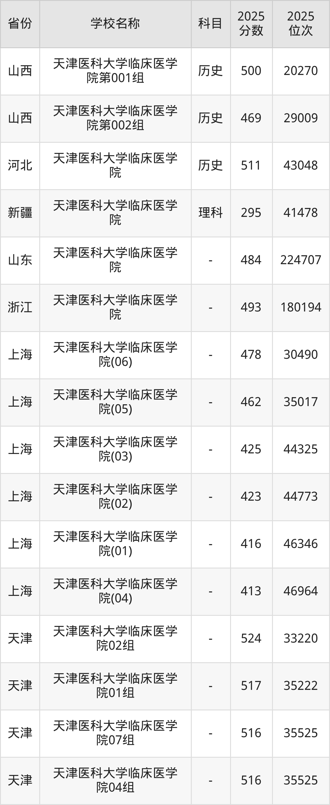 2025年天津医科大学临床医学院在全国各省本科的最低录取分数线在295~559分之间。河南物理类高考生最低559分能上天津医科大学临床医学院、安徽物理类高考生最低551分能上天津医科大学临床医学院……下文将展示天津医科大学临床医学院在全国26个高考省份中的本科最低投档录取分汇总!