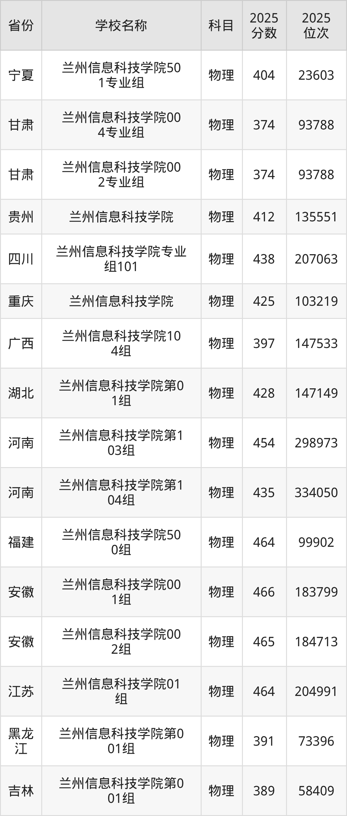 兰州信息科技学院2025年有2个专业组面向甘肃省内首选了物理科目的考生招生: