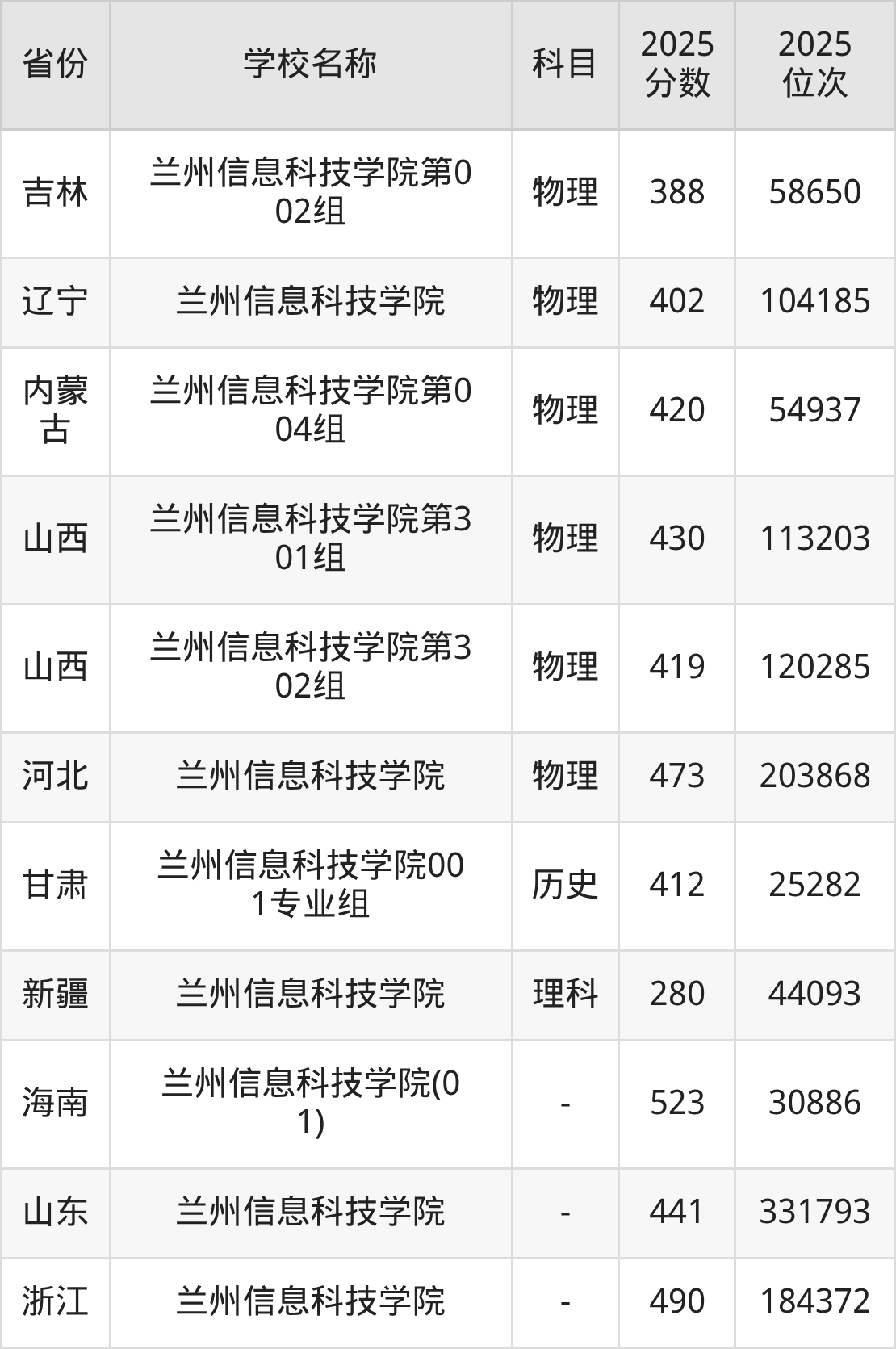 一、2025兰州信息科技学院录取分数线