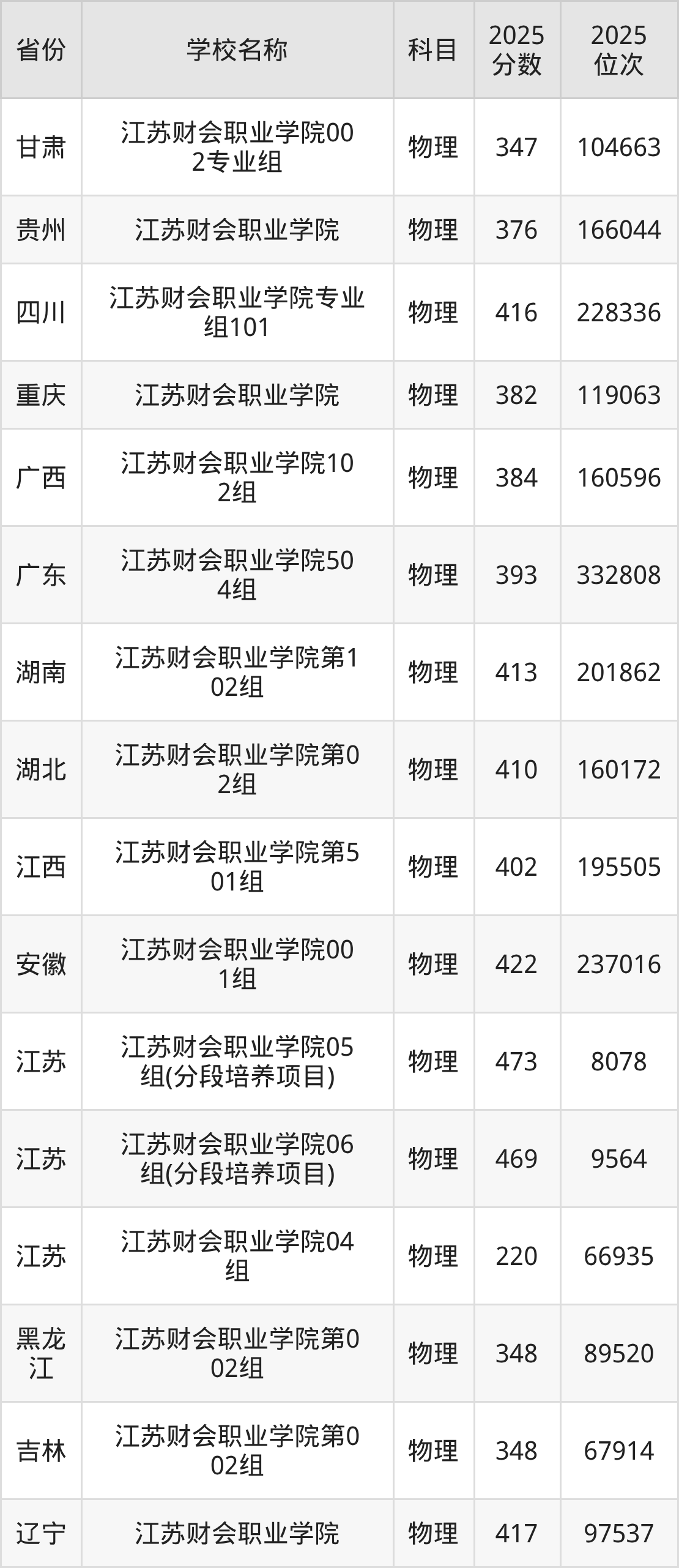 江苏财会职业学院2025年有3个专业组面向江苏省内首选了物理科目的考生招生: